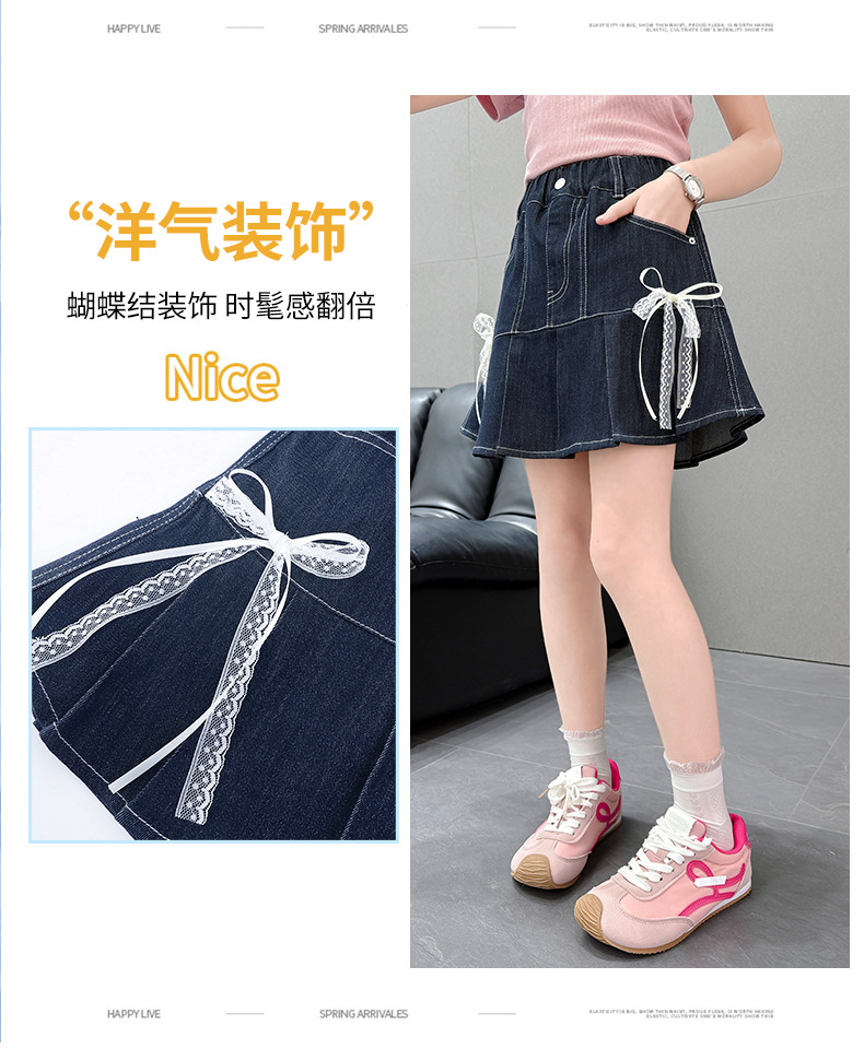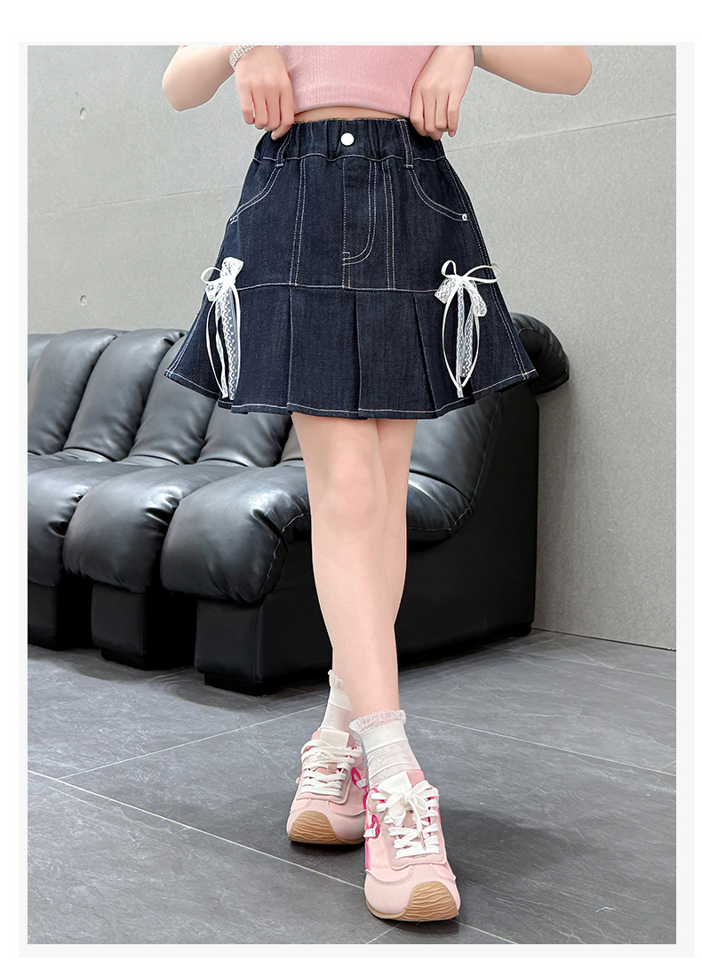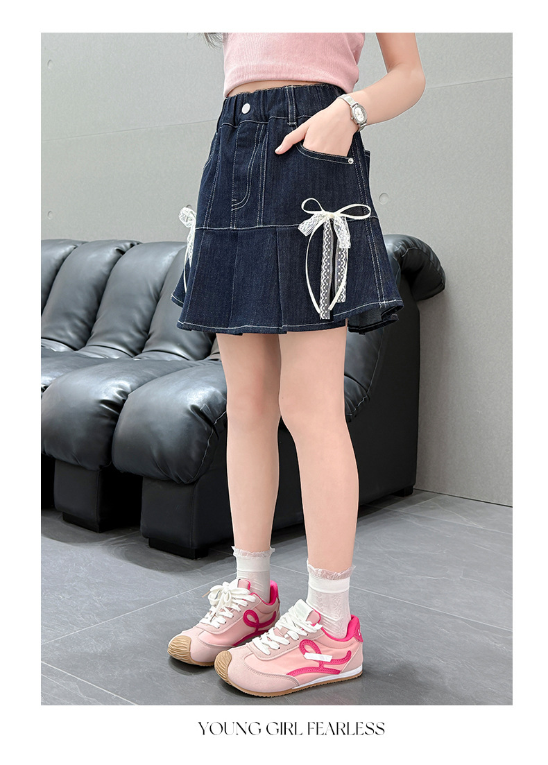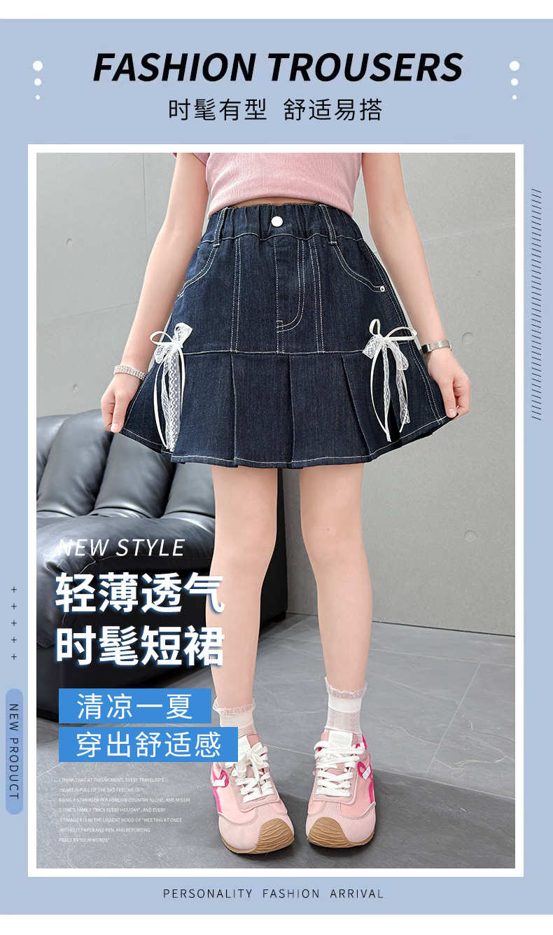 소녀의 여름 Culottes 2025 새로운 스타일 소녀의 클리어 컬러 안티 러닝 라이트 주름 치마 큰 어린이 활 짧은 치마스토어 가기