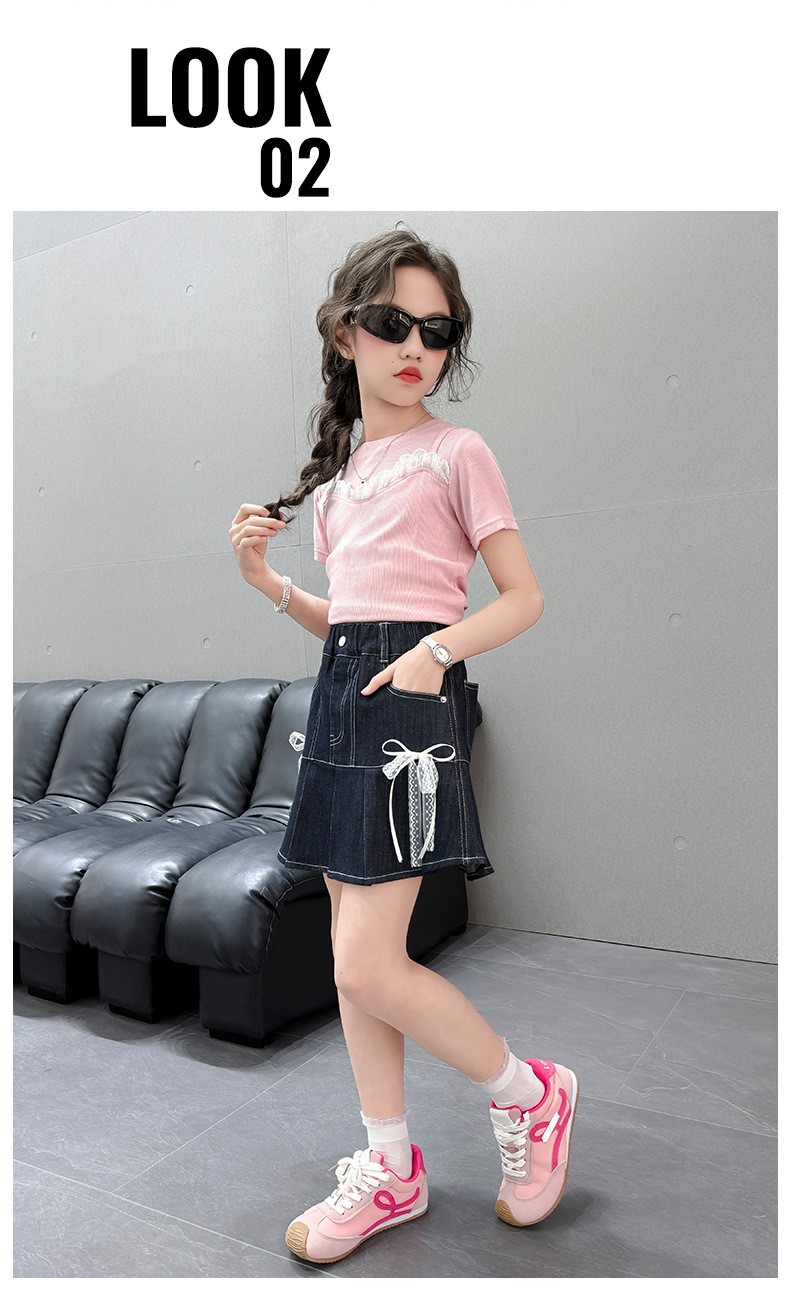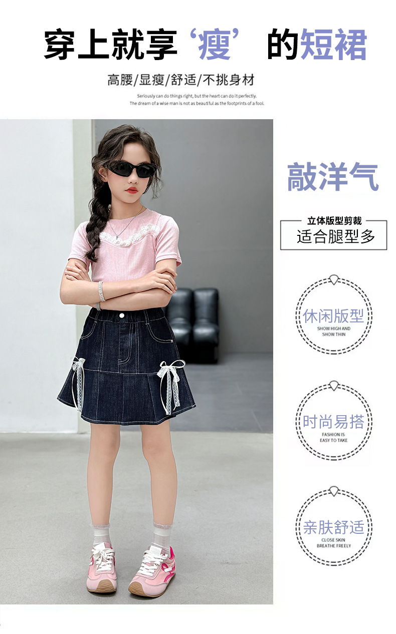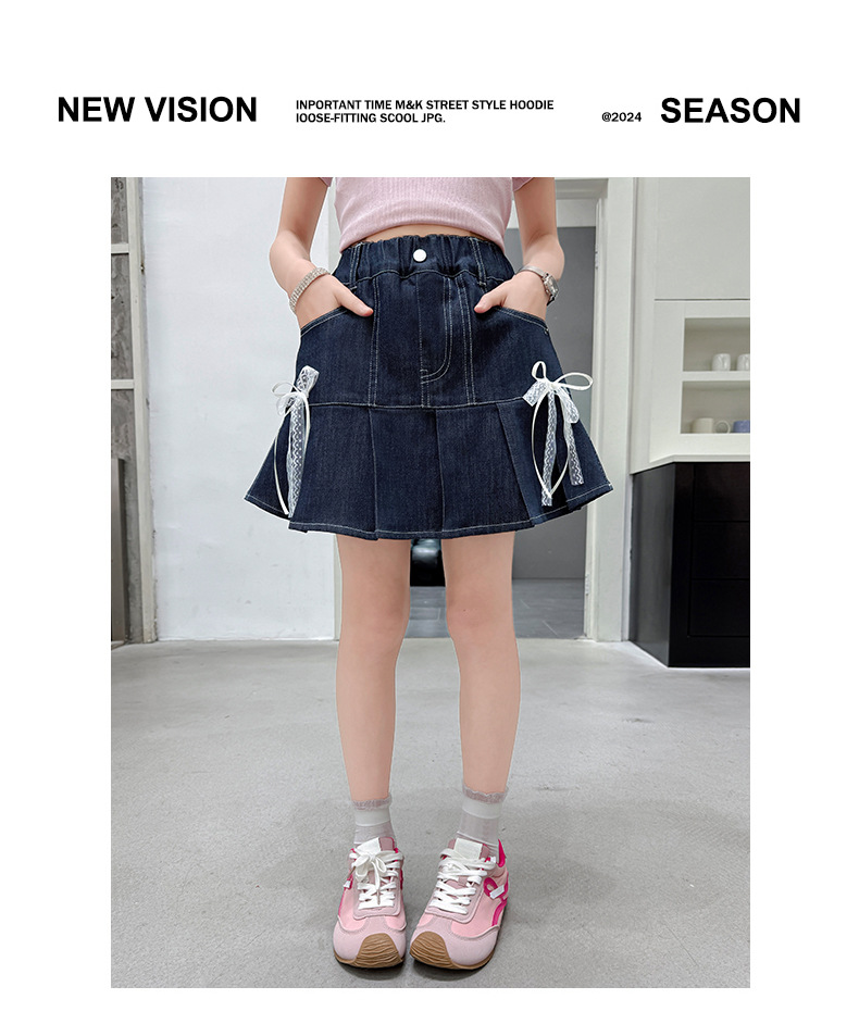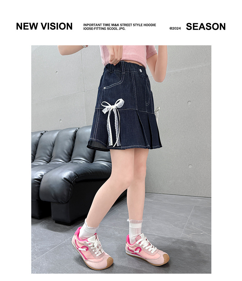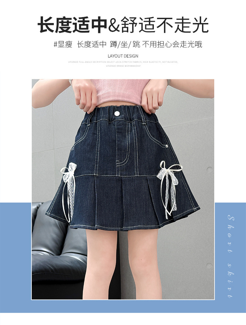 소녀의 여름 Culottes 2025 새로운 스타일 소녀의 클리어 컬러 안티 러닝 라이트 주름 치마 큰 어린이 활 짧은 치마스토어 가기