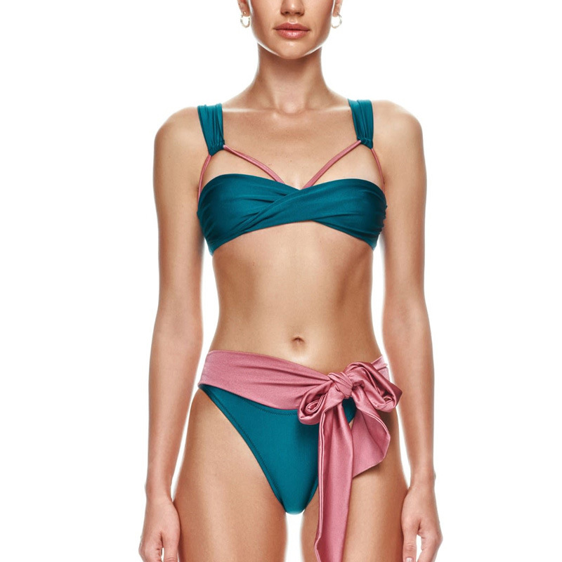 패셔너블한 대비 컬러 크로스 스트랩 비키니 핑크 허리 장식 섹시한 수영복 투피스 세트 유럽과 미국의 국경 간 대외 무역스토어 가기