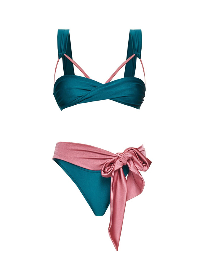패셔너블한 대비 컬러 크로스 스트랩 비키니 핑크 허리 장식 섹시한 수영복 투피스 세트 유럽과 미국의 국경 간 대외 무역
