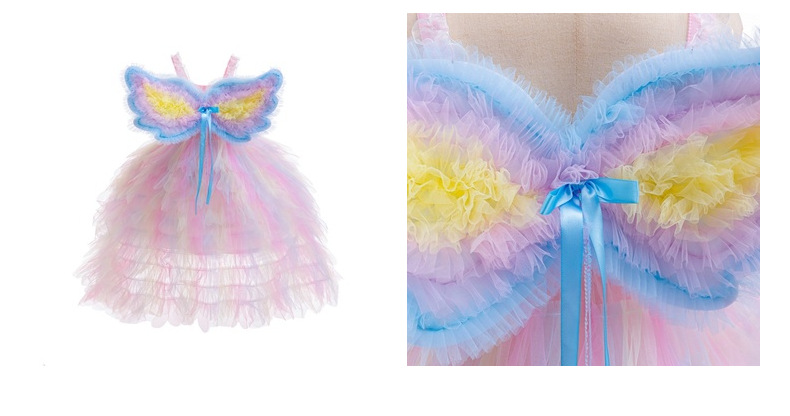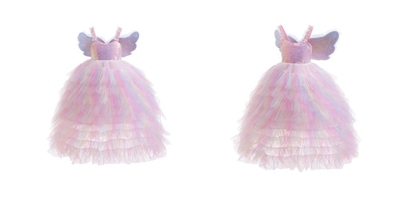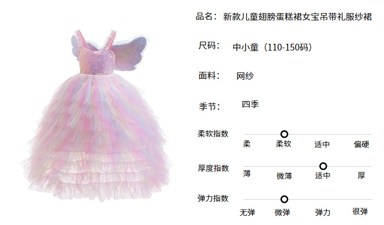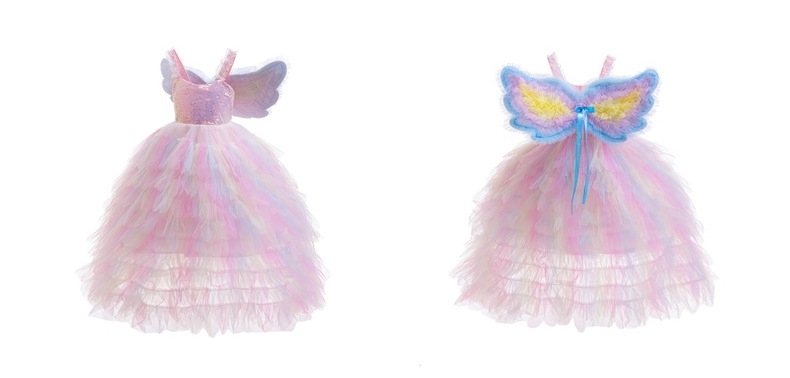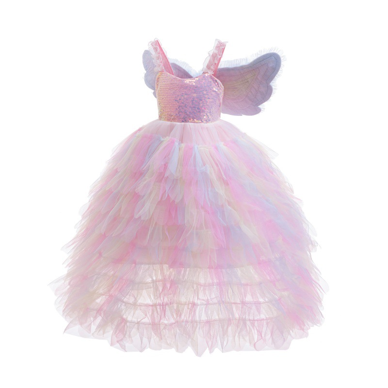 공주 드레스 소녀 여름 드레스 2025 새로운 어린이 날개 케이크 드레스 아기 소녀 서스펜더 드레스 거즈 드레스스토어 가기