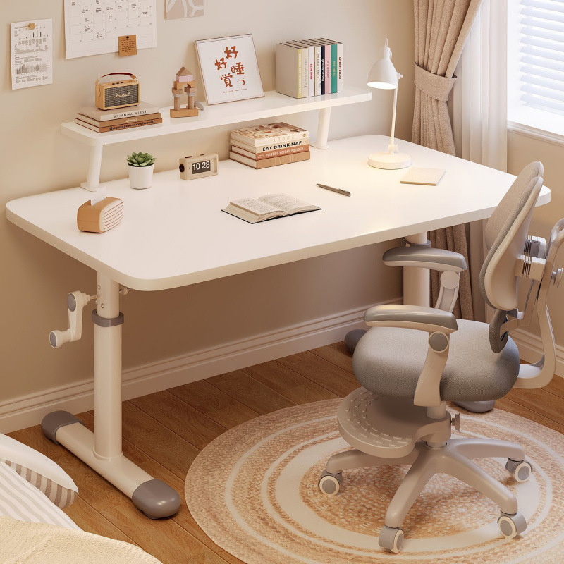 수동 리프팅 화이트 테이블 두꺼운 간단한 어린이 학습 책상 기숙사 연구 홈 컴퓨터 테이블 및 의자 세트스토어 가기