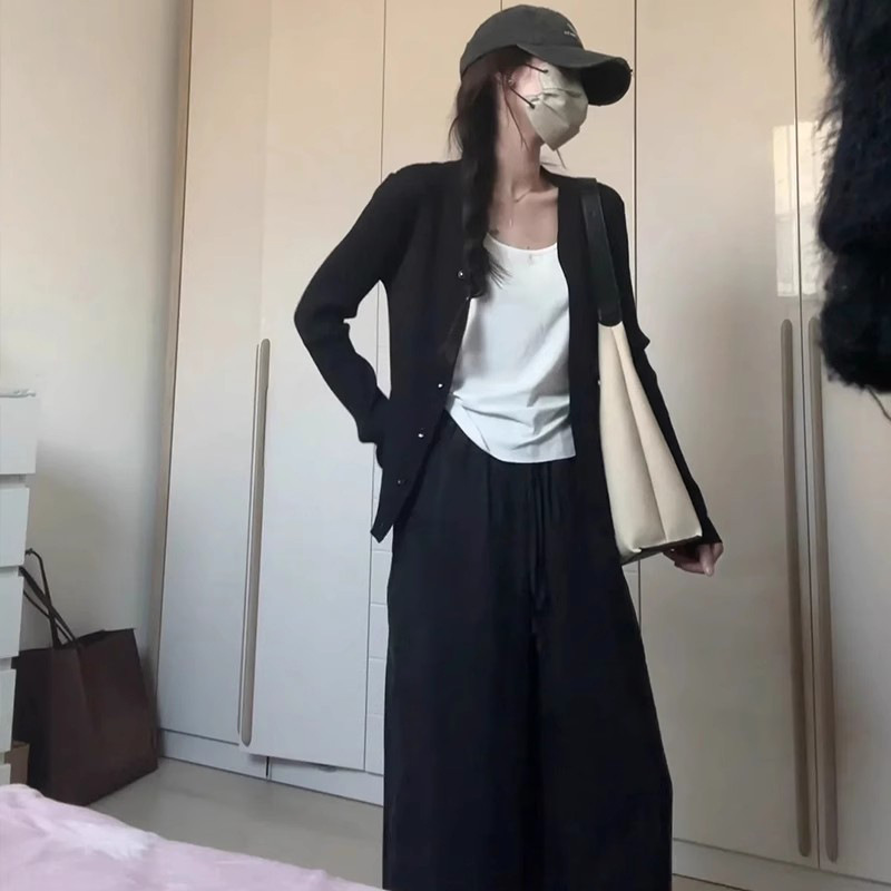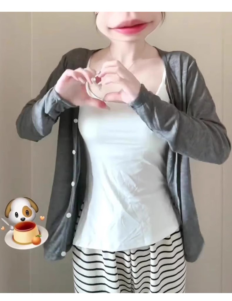 그레이 니트 가디건 여름 얇은 2025 코트 여성 봄, 가을 외부 서스펜더 블라우스 탑 블랙 여름스토어 가기