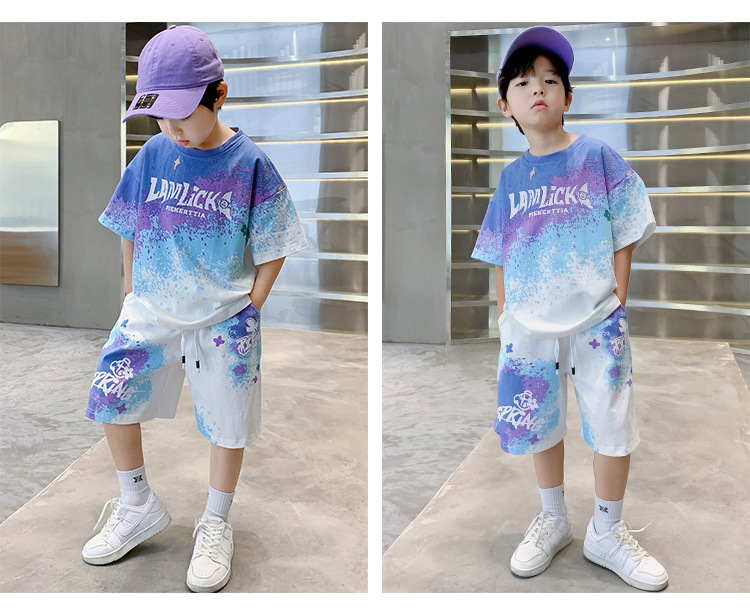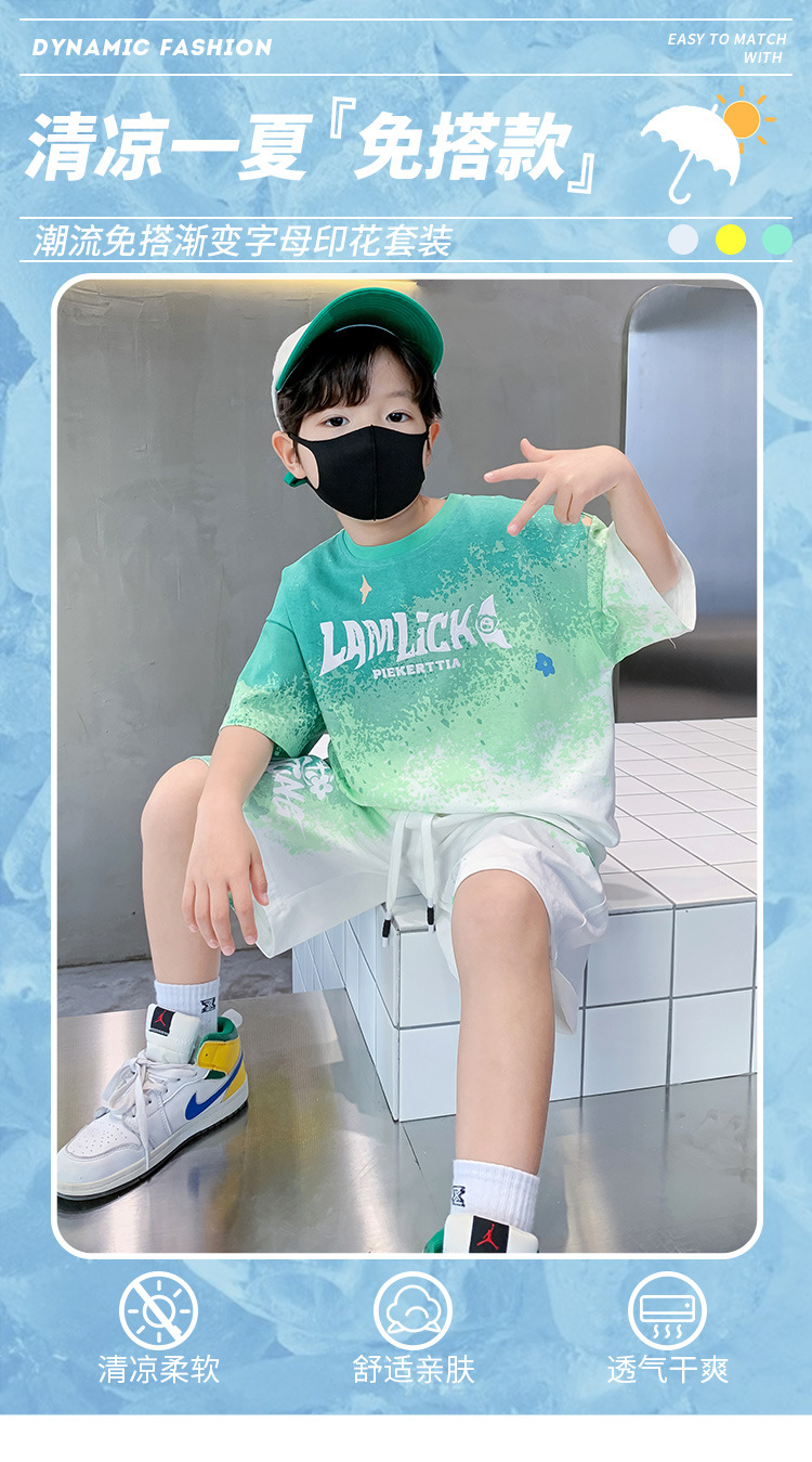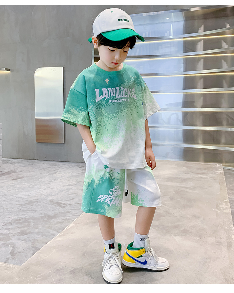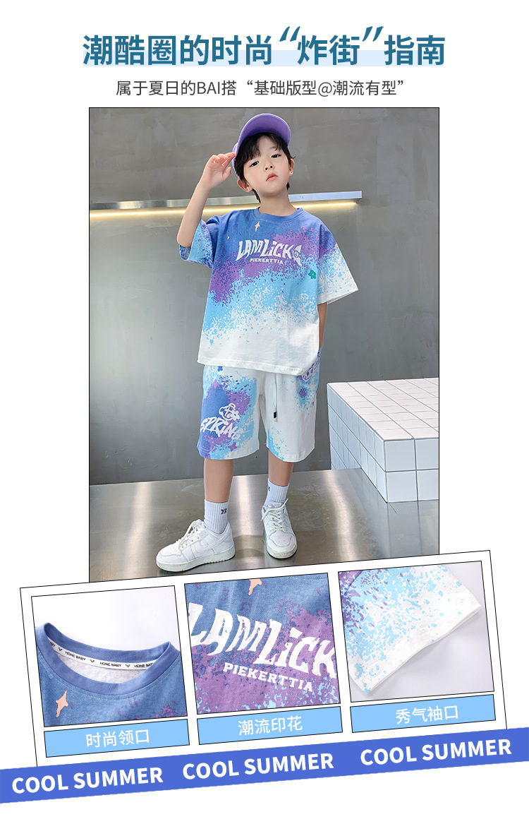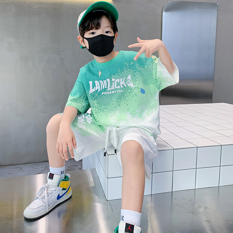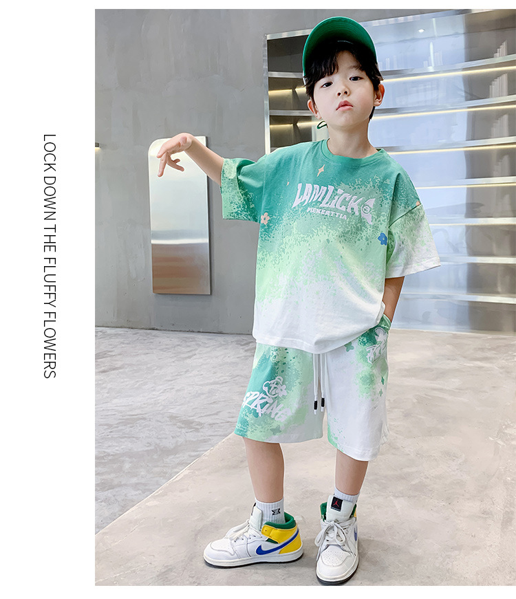 남자들의 여름 반팔 세트 2025 새로운 유행 어린이 잘 생긴 여름 얇은 인터넷 연예인 프라이 스트리트 미들 큰 어린이 패션스토어 가기