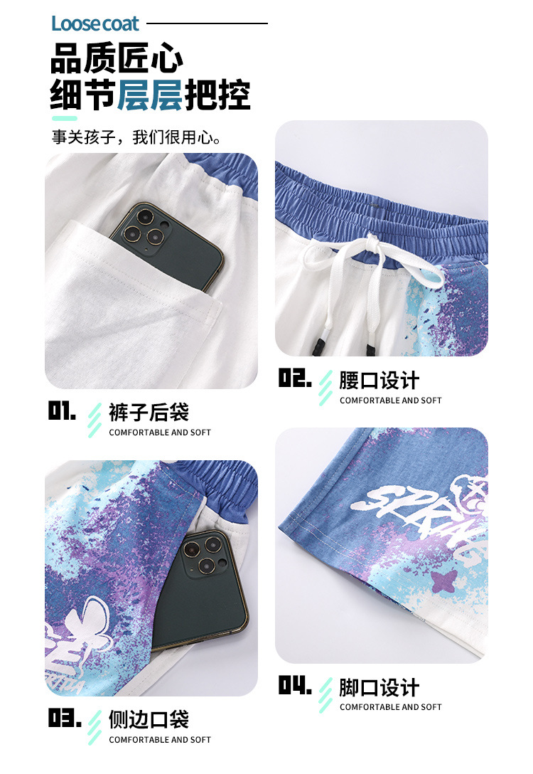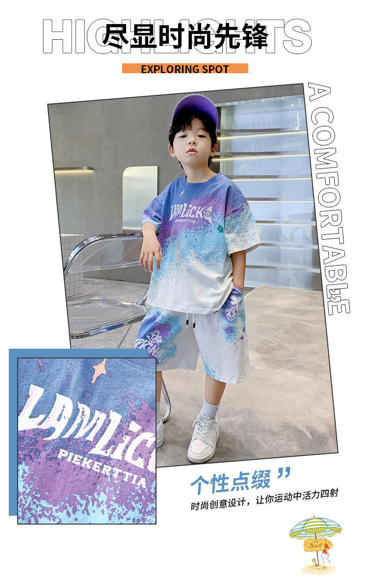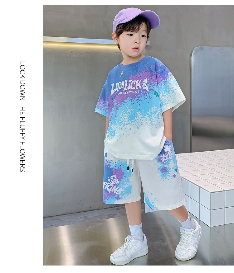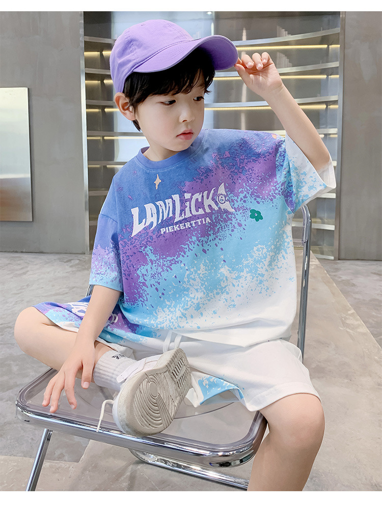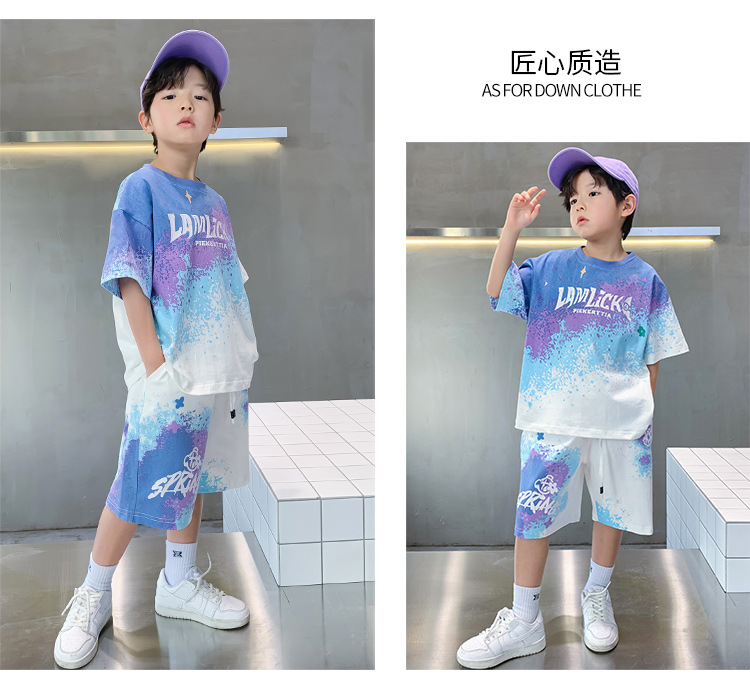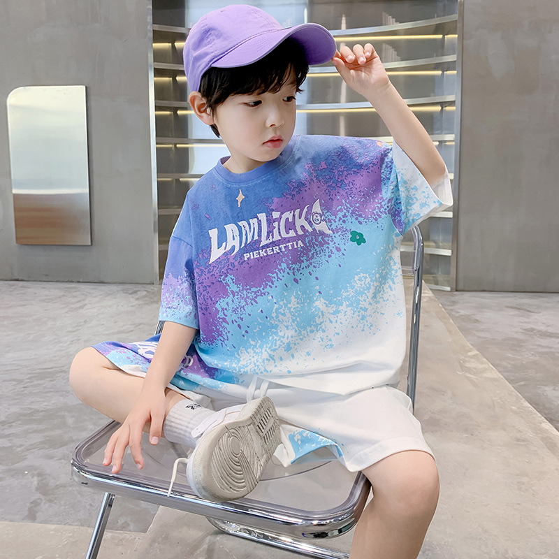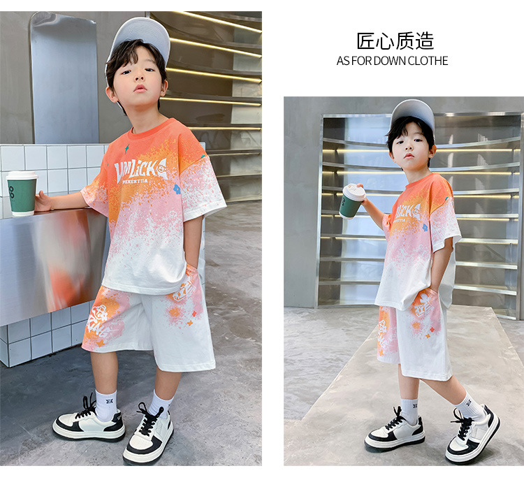 남자들의 여름 반팔 세트 2025 새로운 유행 어린이 잘 생긴 여름 얇은 인터넷 연예인 프라이 스트리트 미들 큰 어린이 패션스토어 가기