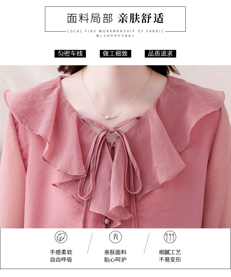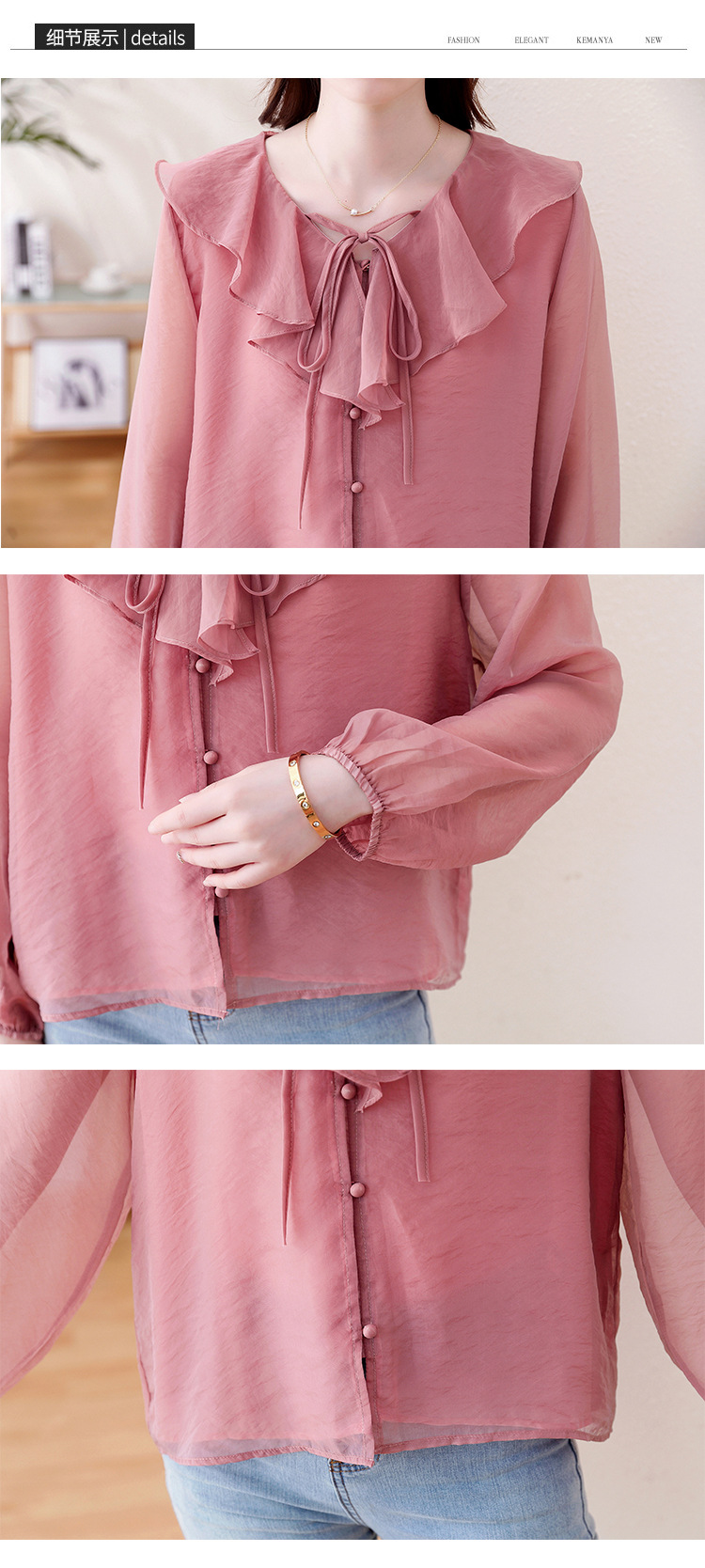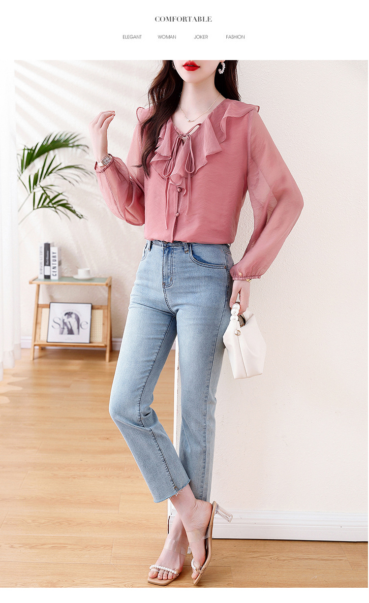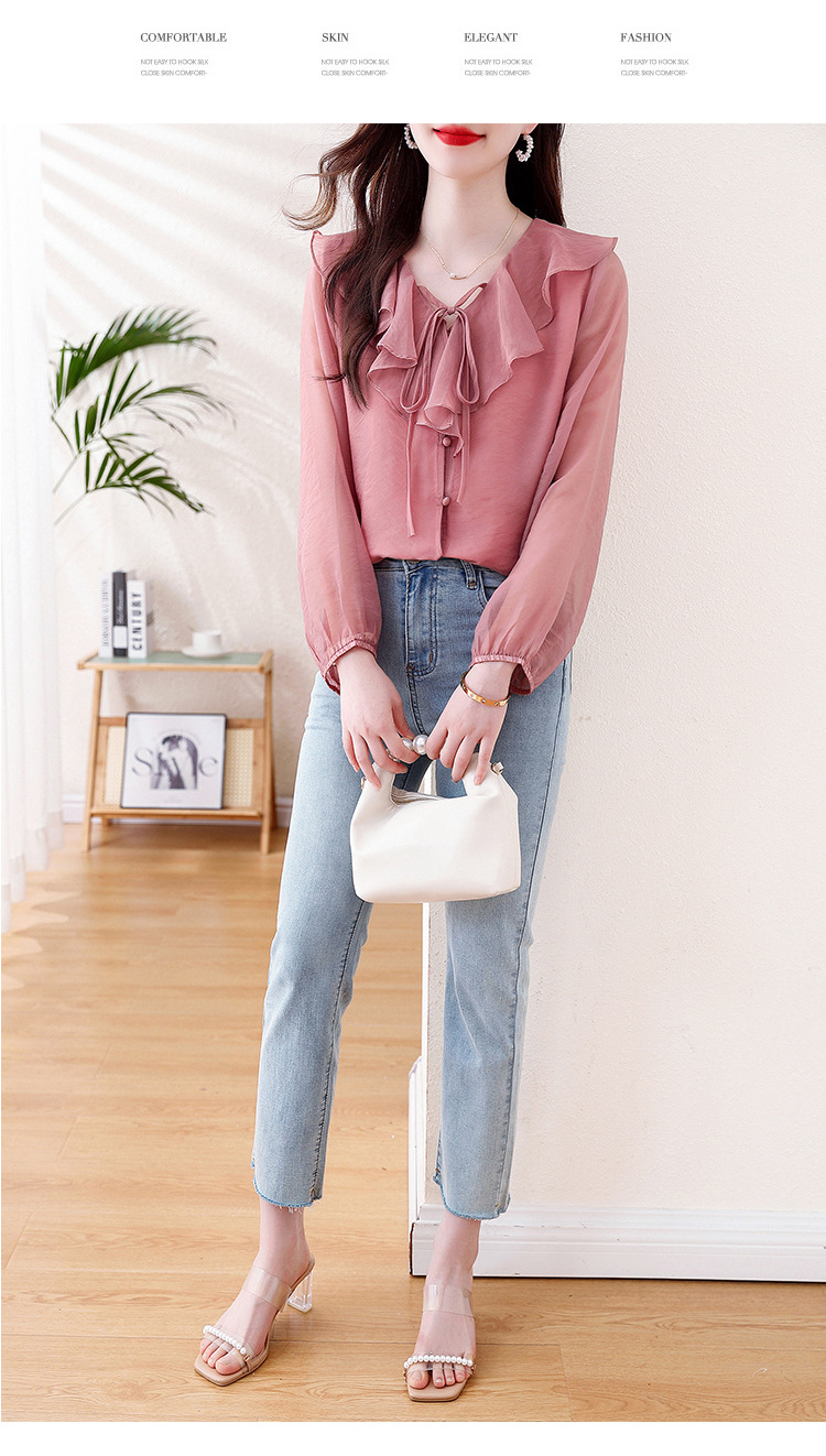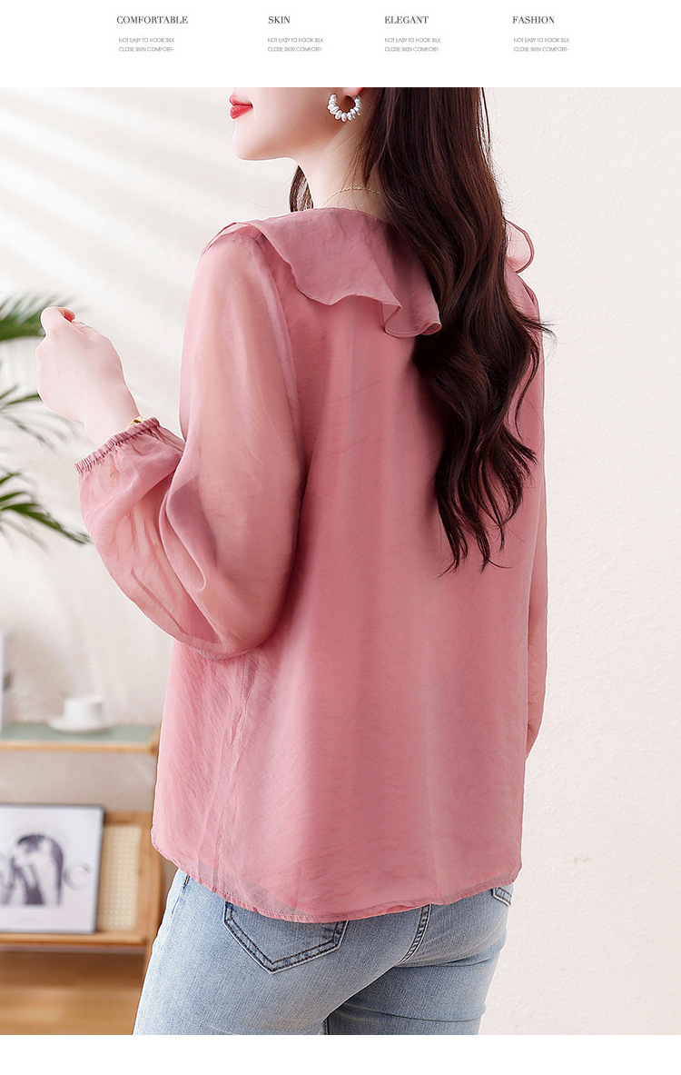 프랑스 스타일 부드러운 연령 감소 러플 V 넥 셔츠 여성의 2025 년 봄과 여름 달콤한 우아한 인형 셔츠 선스크린 탑스토어 가기