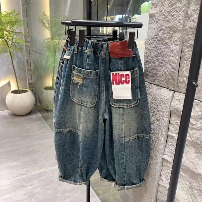 2025 년 아동복 아동용 청바지 봄과 가을 새로운 한국식 구멍 복고풍 바지 손수 좋은 표준 트렌디스토어 가기