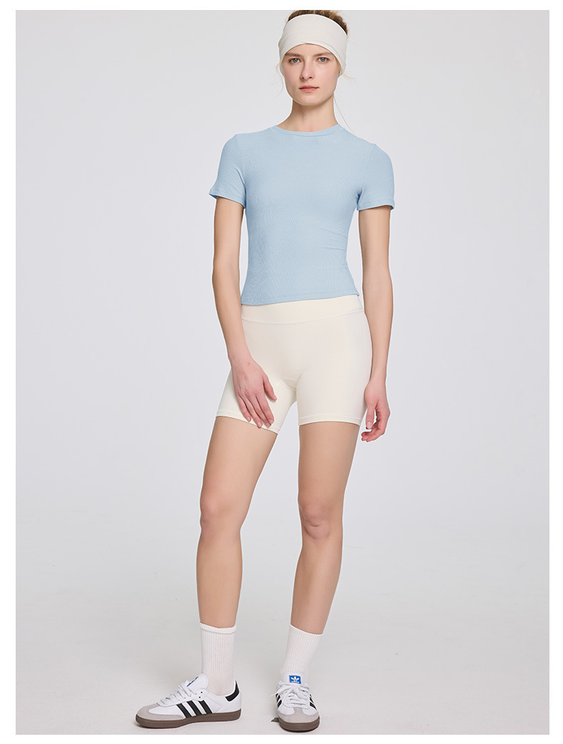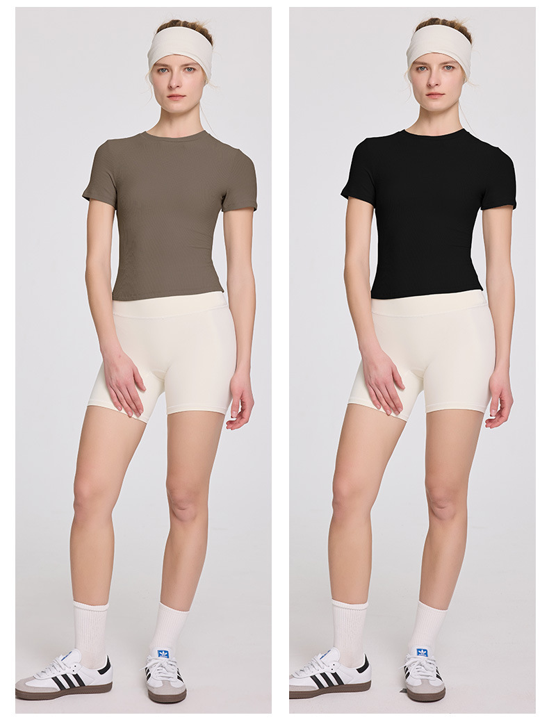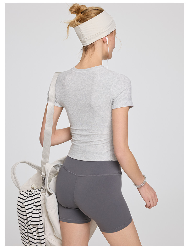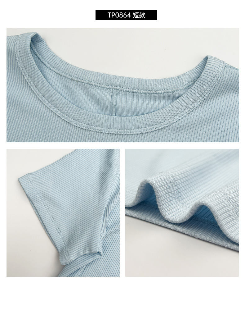 봄 여름 새로운 요가 착용 텐셀 모달 스레드 작은 라운드 넥 티셔츠 긴 스포츠 탑 피트니스 착용스토어 가기