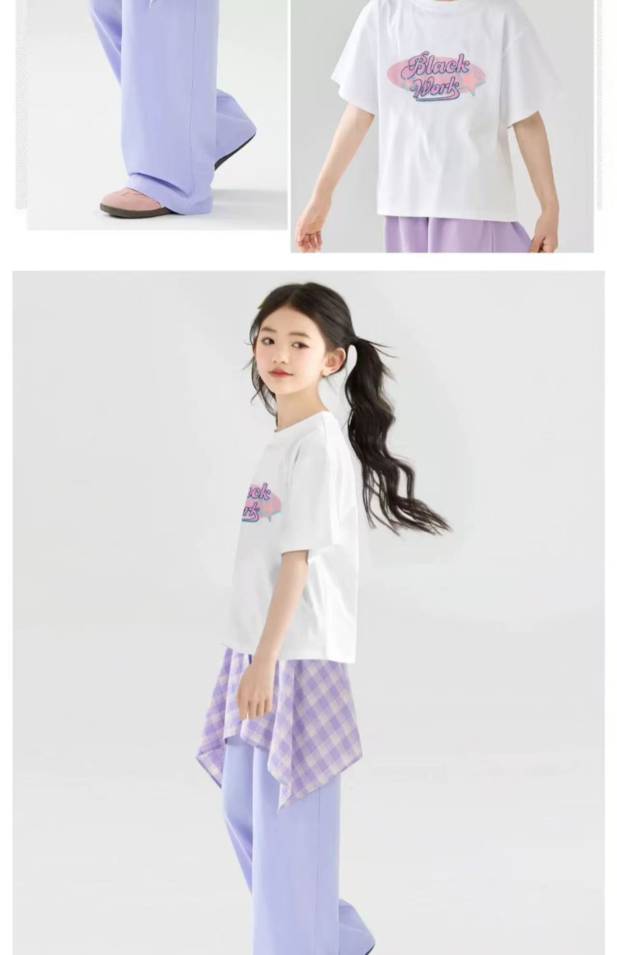 국경 간 소녀 정장 2025 새로운 어린이 반팔 와이드 팬츠 여름 의류 유행 두 조각 세트 큰 소녀를위한스토어 가기