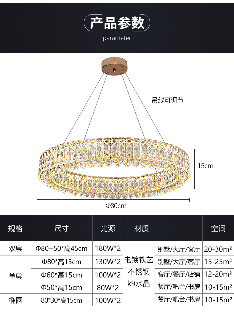 가벼운 고급 크리스탈 램프 거실 샹들리에 고급 센스 홀 메인 램프 2025 새로운 중산 램프 레스토랑 침실 램프스토어 가기