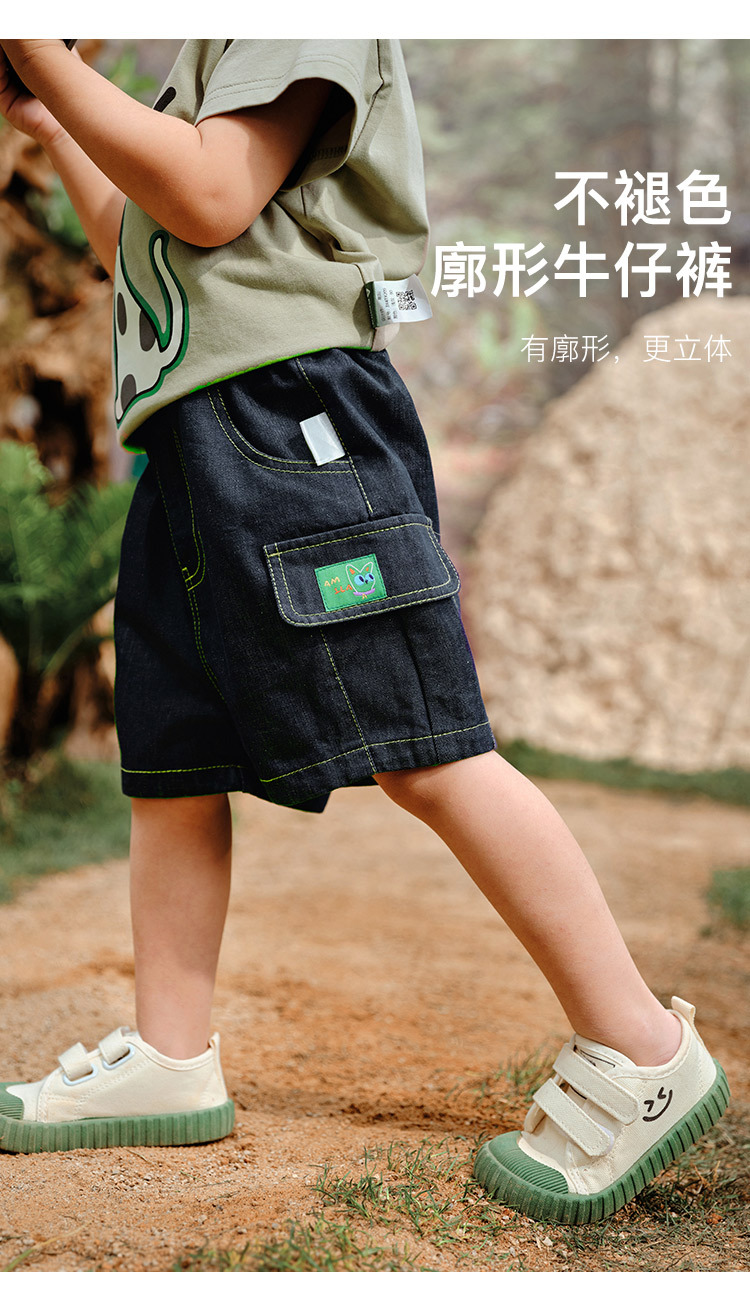 소년의 멋진 통기성 캐주얼 데님 반바지 24 년 여름 새로운 어린이 패션 작업 바지스토어 가기