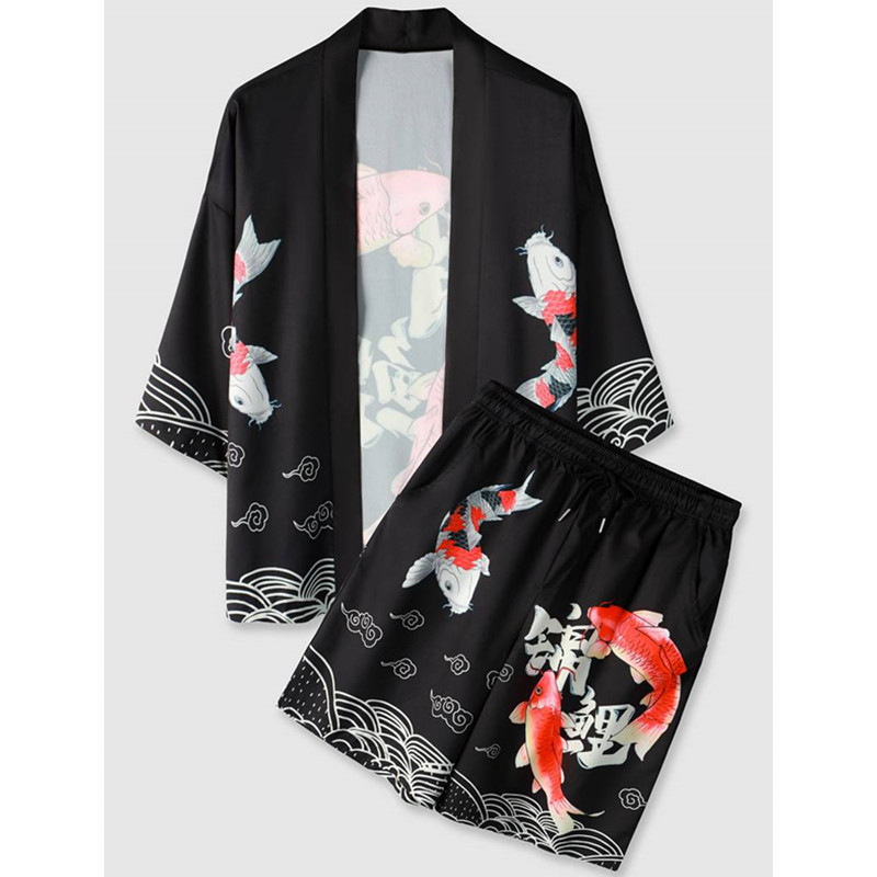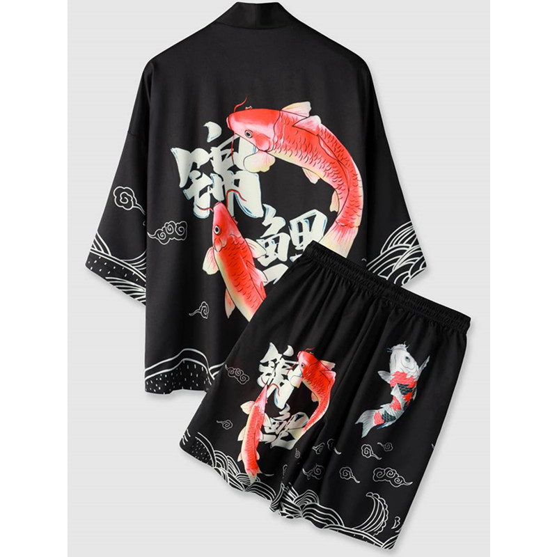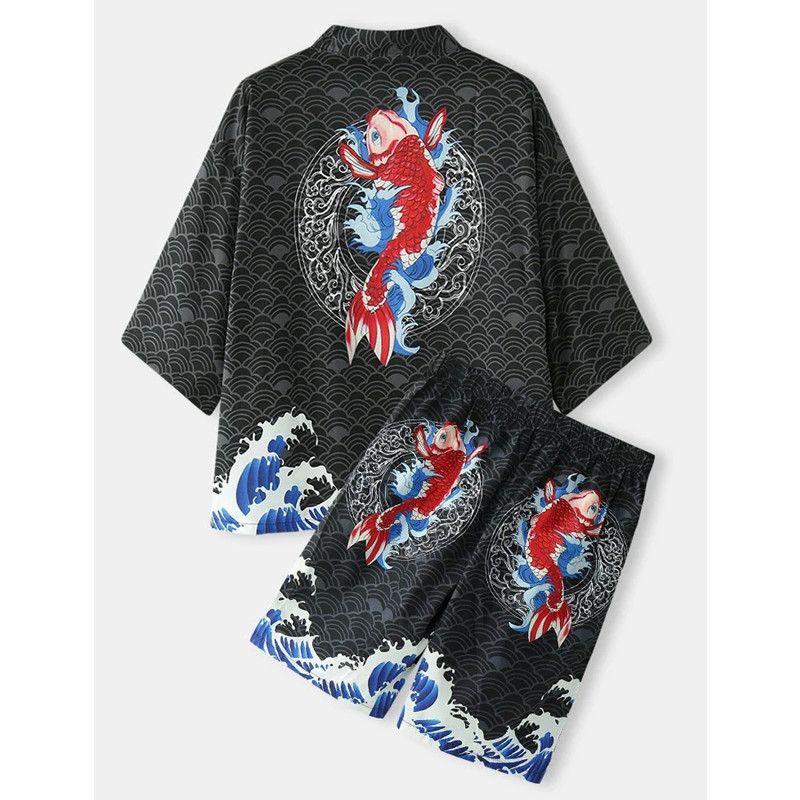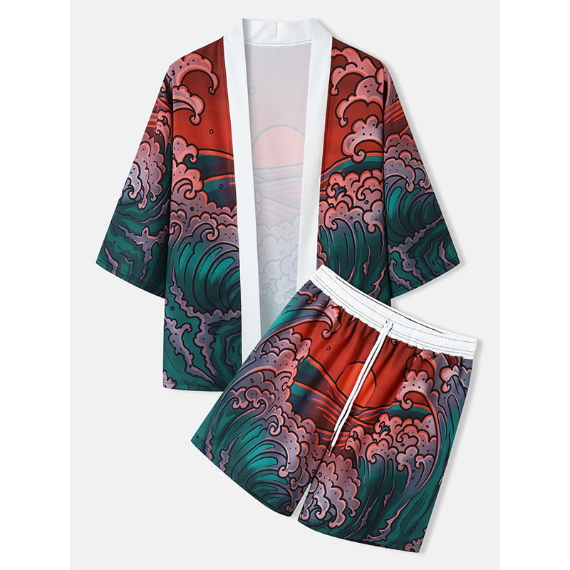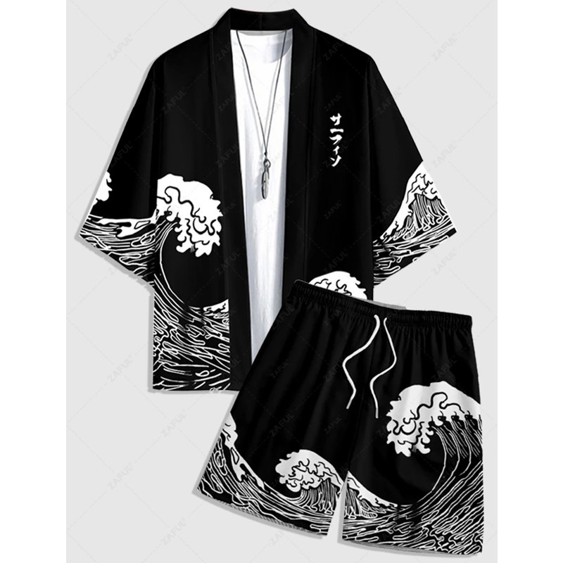 신작 2025 하라주쿠 스타일 웨이브 기모노 재킷 세트 목욕 가운 2차원 망토 잠옷
