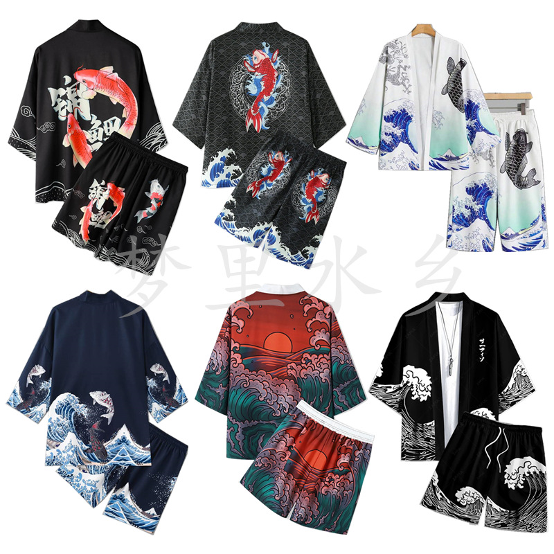 신작 2025 하라주쿠 스타일 웨이브 기모노 재킷 세트 목욕 가운 2차원 망토 잠옷스토어 가기