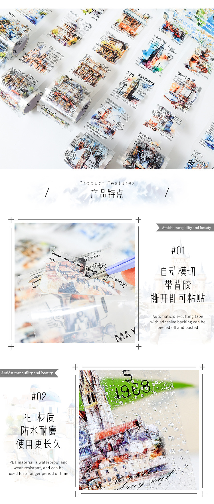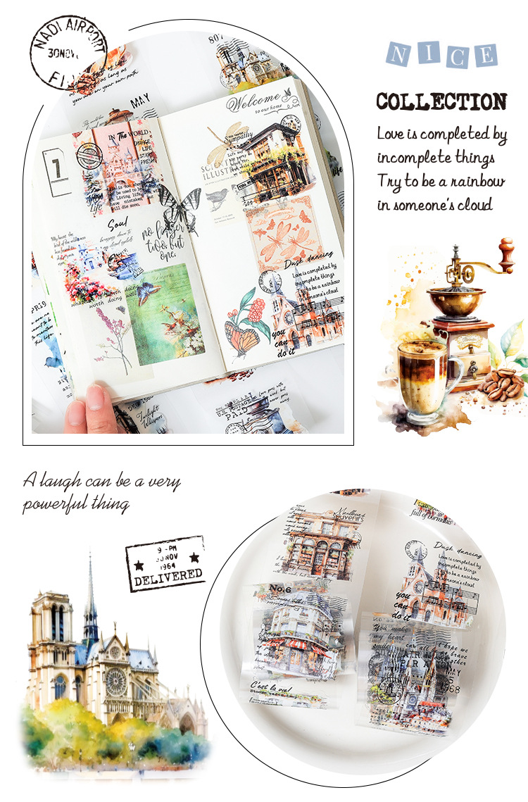 Yuezhen Shanye Qingkuang 커팅 필름 테이프 손 계정 테이프 국경 간 ZABC 복고풍 풍경 테이프 애완 동물 손 계정 테이프스토어 가기
