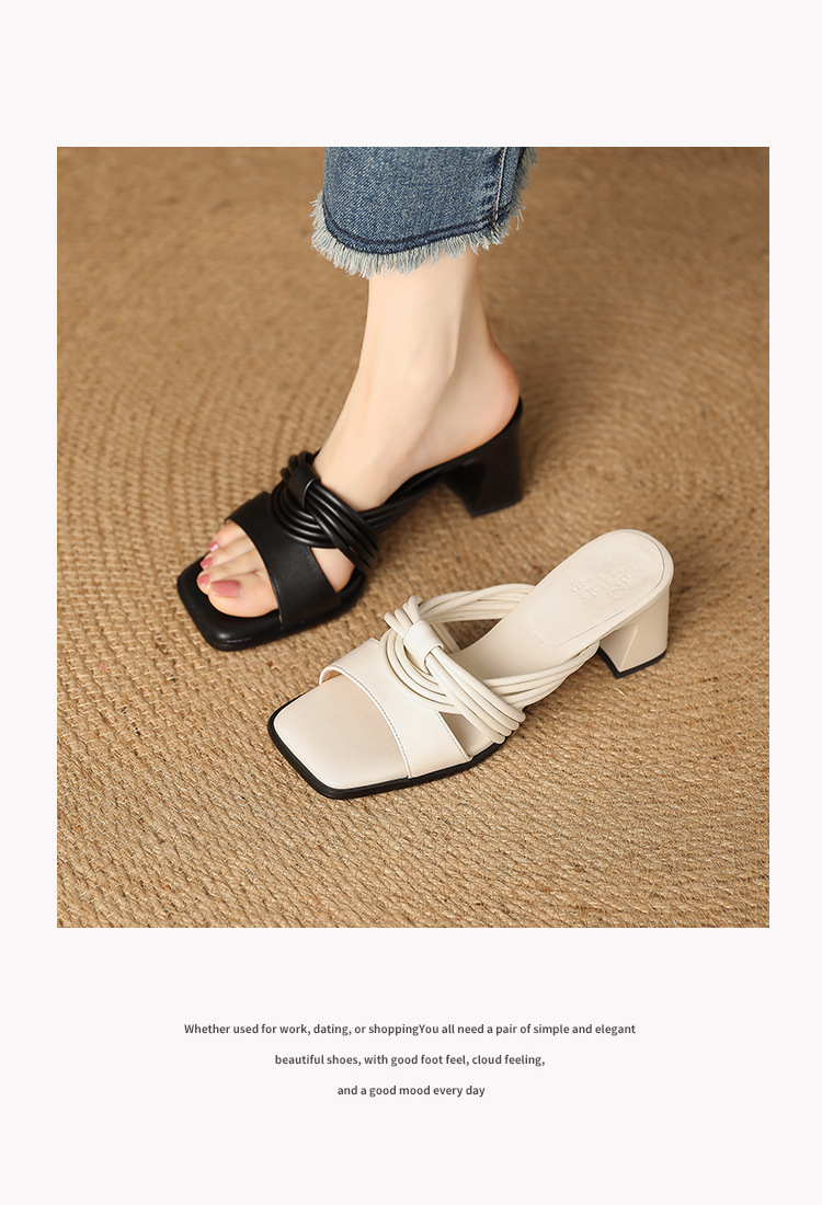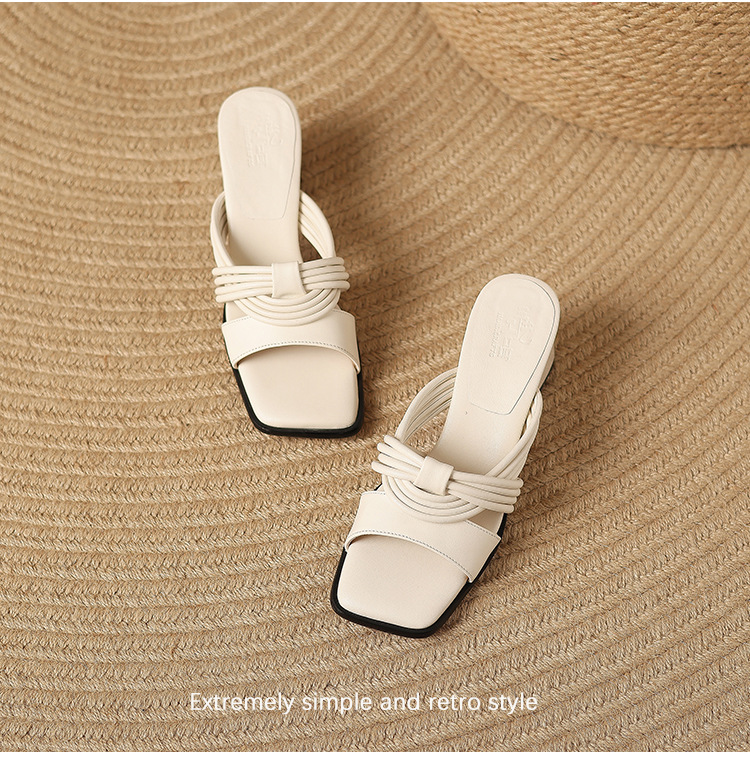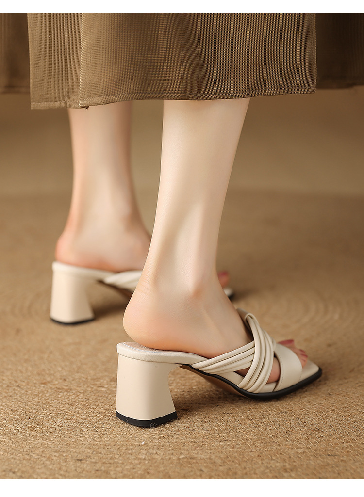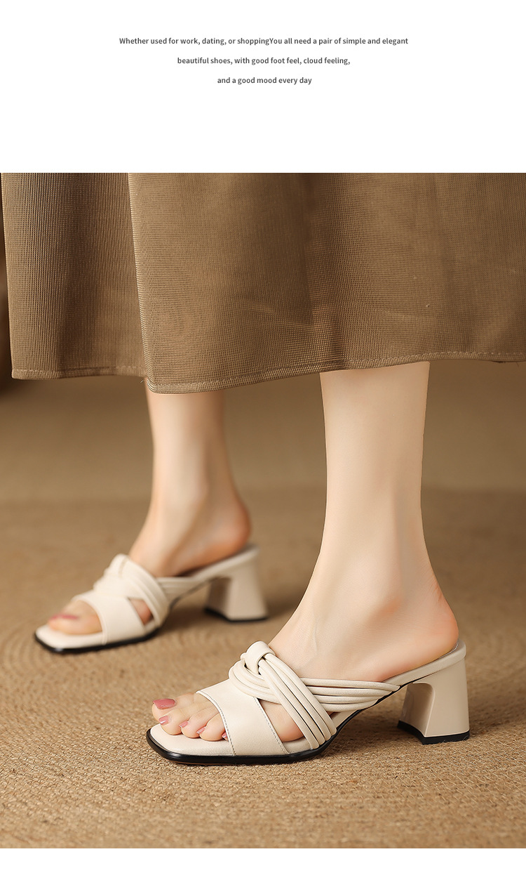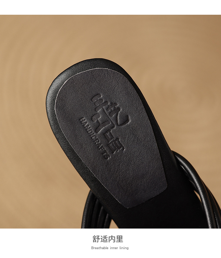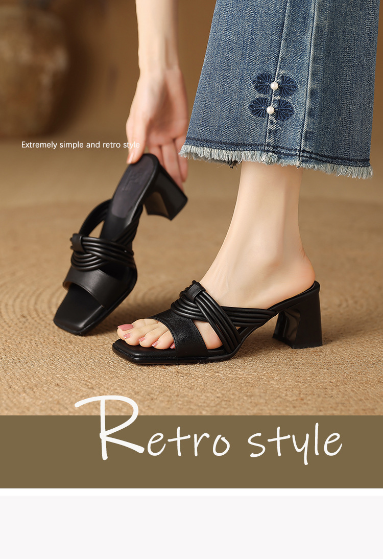 프렌치 레트로 정품 가죽 라운드 토 오픈 토 블록 힐 샌들 여자 2025 뉴 할로우 아웃 편안한 로마 신발 올 매치 샌들스토어 가기