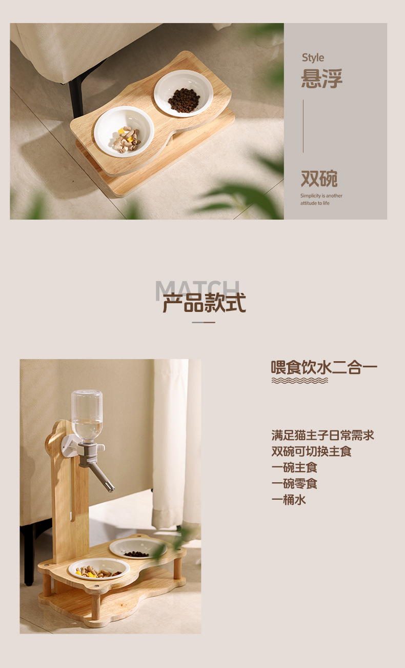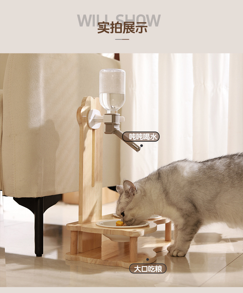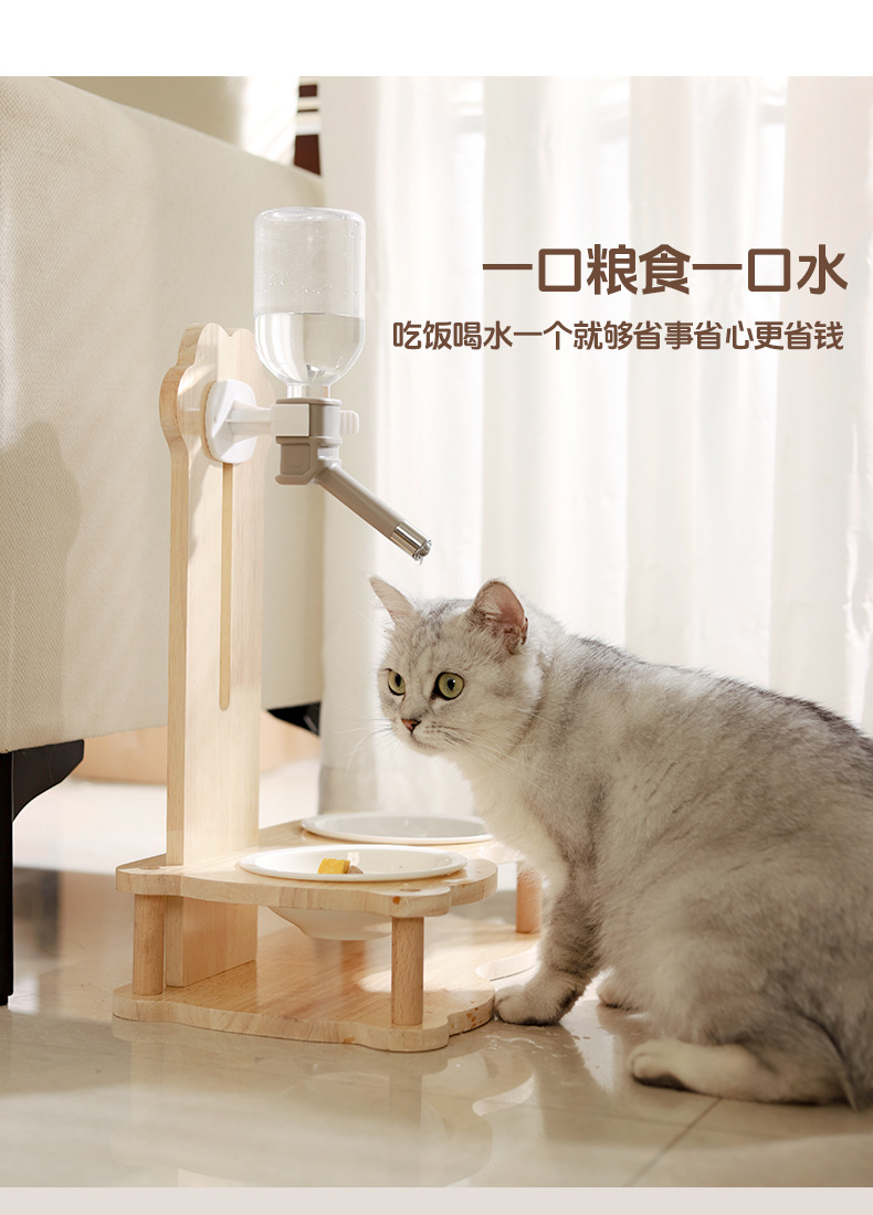 공장 직접 공급 고양이 그릇 단단한 나무 세라믹 새로운 2 대 1 먹이 물 공급 고양이 개 보편적 인 국경 간 폭발스토어 가기