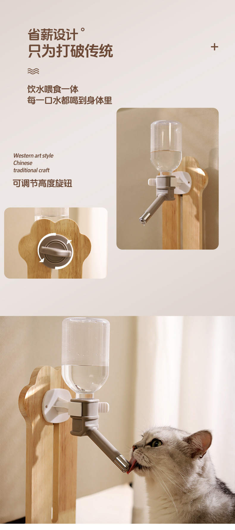 공장 직접 공급 고양이 그릇 단단한 나무 세라믹 새로운 2 대 1 먹이 물 공급 고양이 개 보편적 인 국경 간 폭발