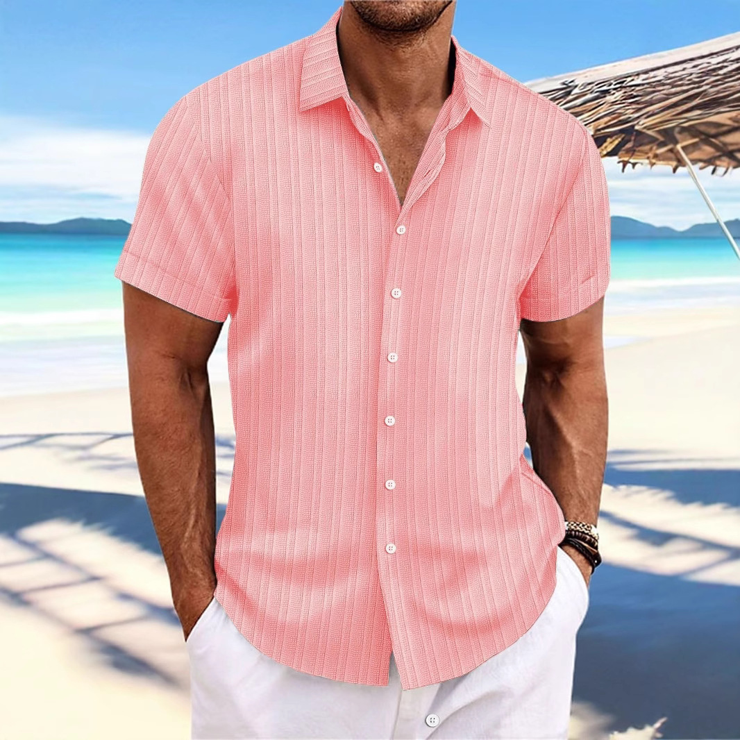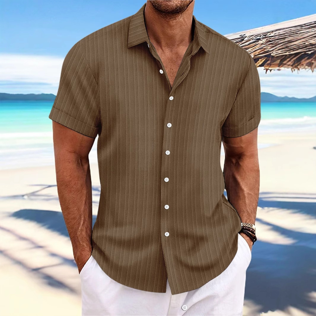 국경 간 유럽과 미국 남성 면 및 린넨 셔츠 반팔 캐주얼 인기 아마존 느슨한 통기성 자카드 AliExpress