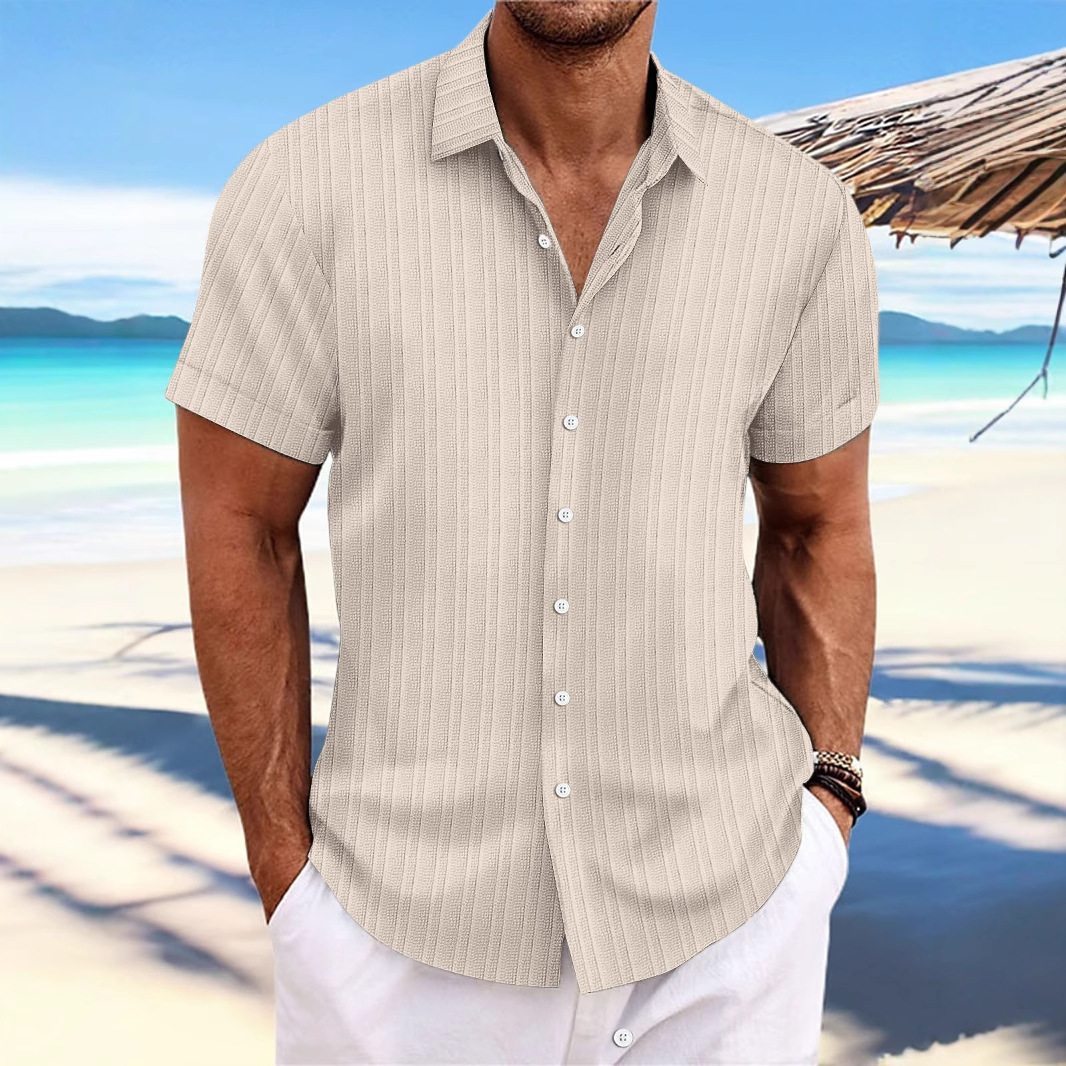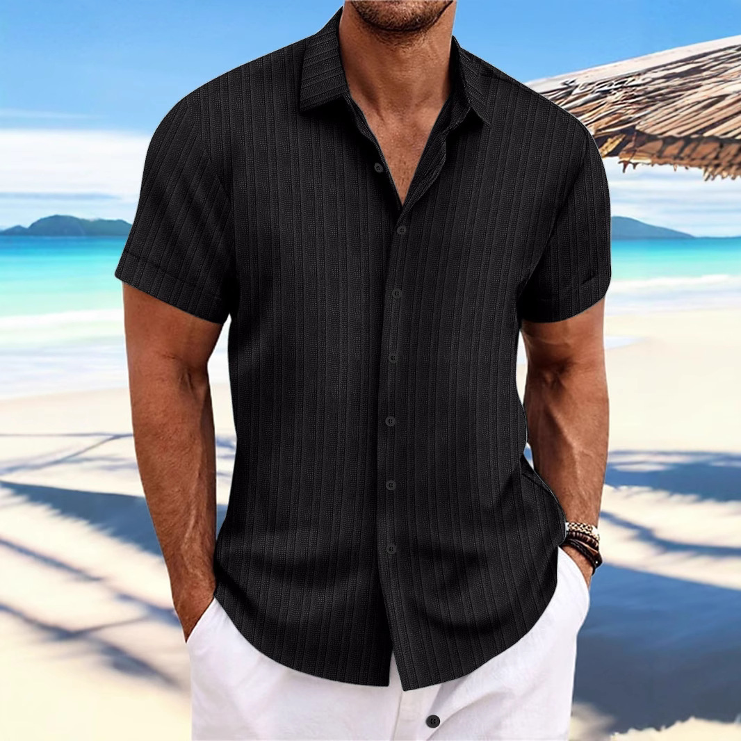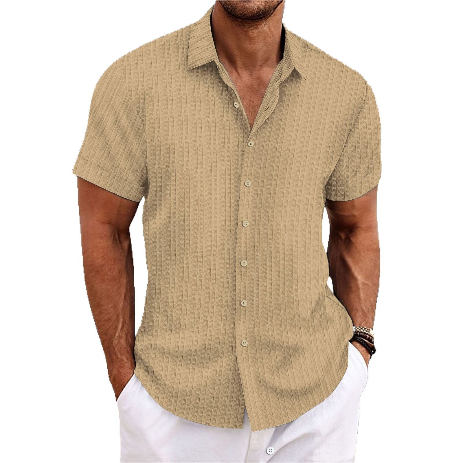 국경 간 유럽과 미국 남성 면 및 린넨 셔츠 반팔 캐주얼 인기 아마존 느슨한 통기성 자카드 AliExpress스토어 가기