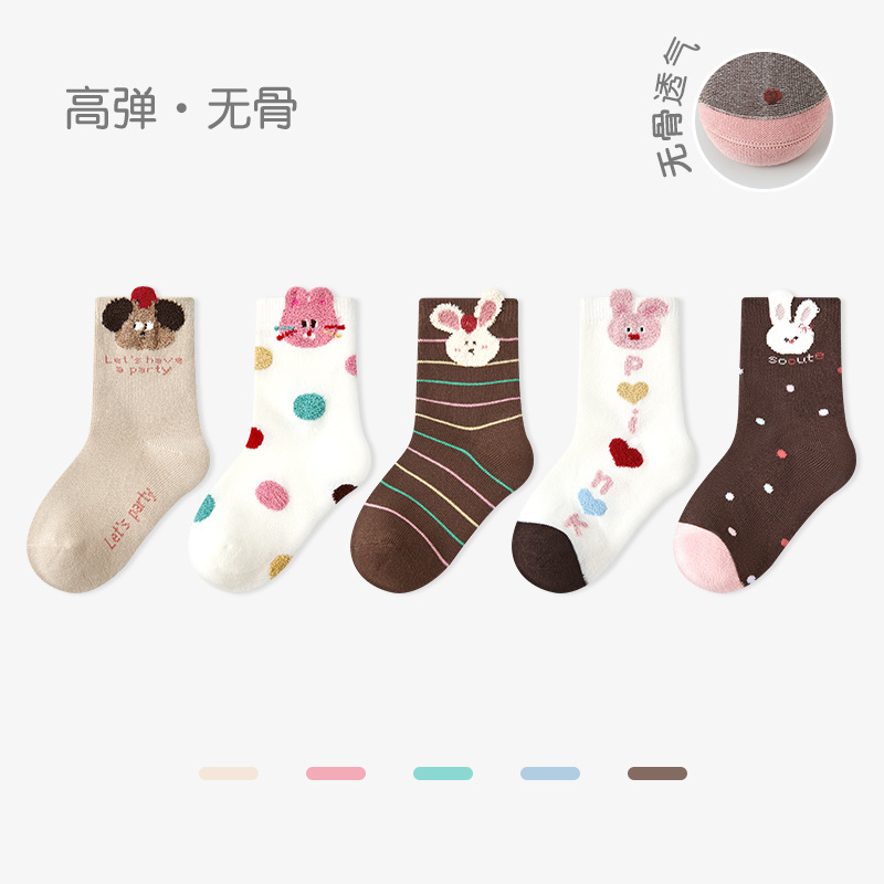 1734 어린이 양말 도매 가을 얇은 무지개 웨이브 도트 양말 3 차원 만화 아기 양말면 뼈없는 소녀 양말