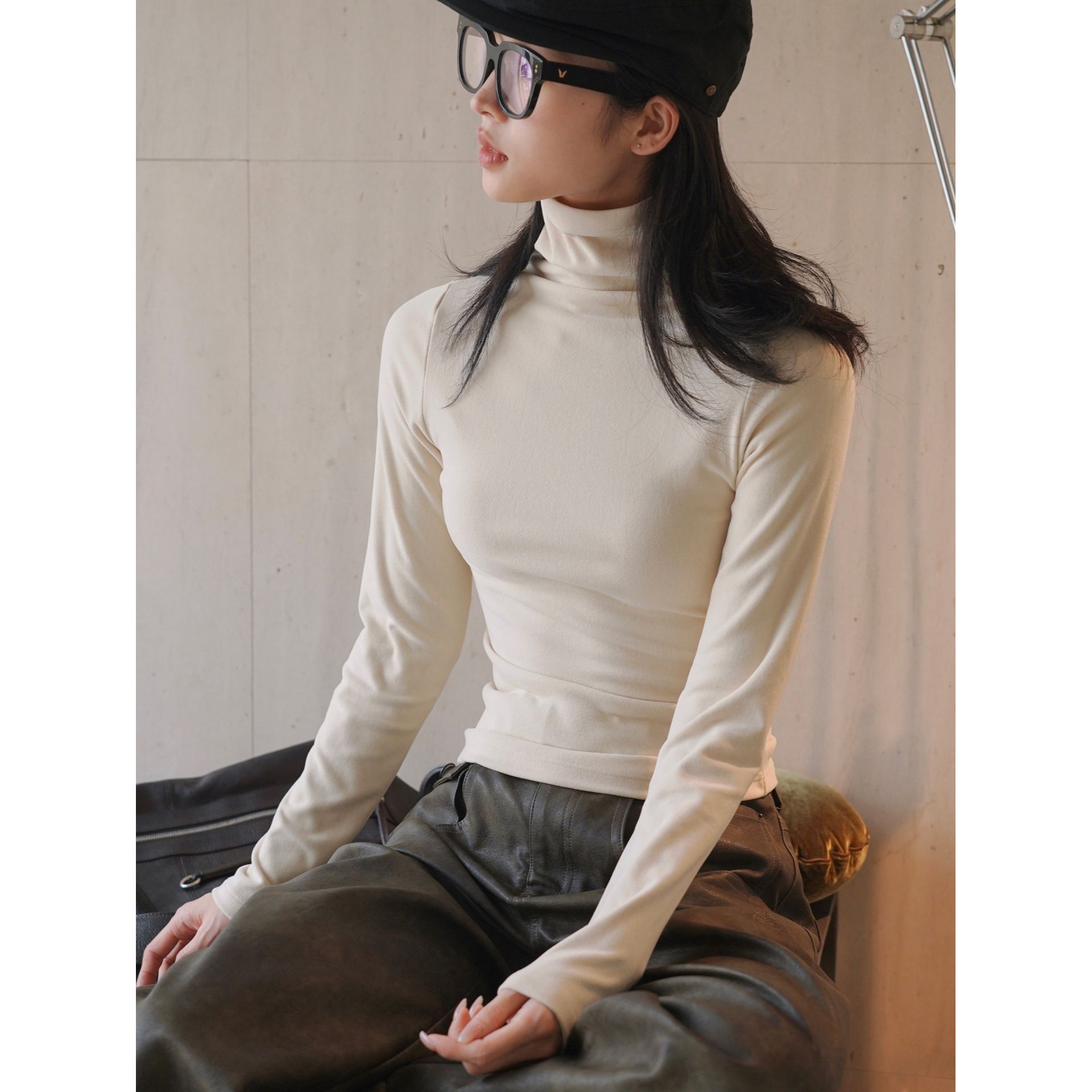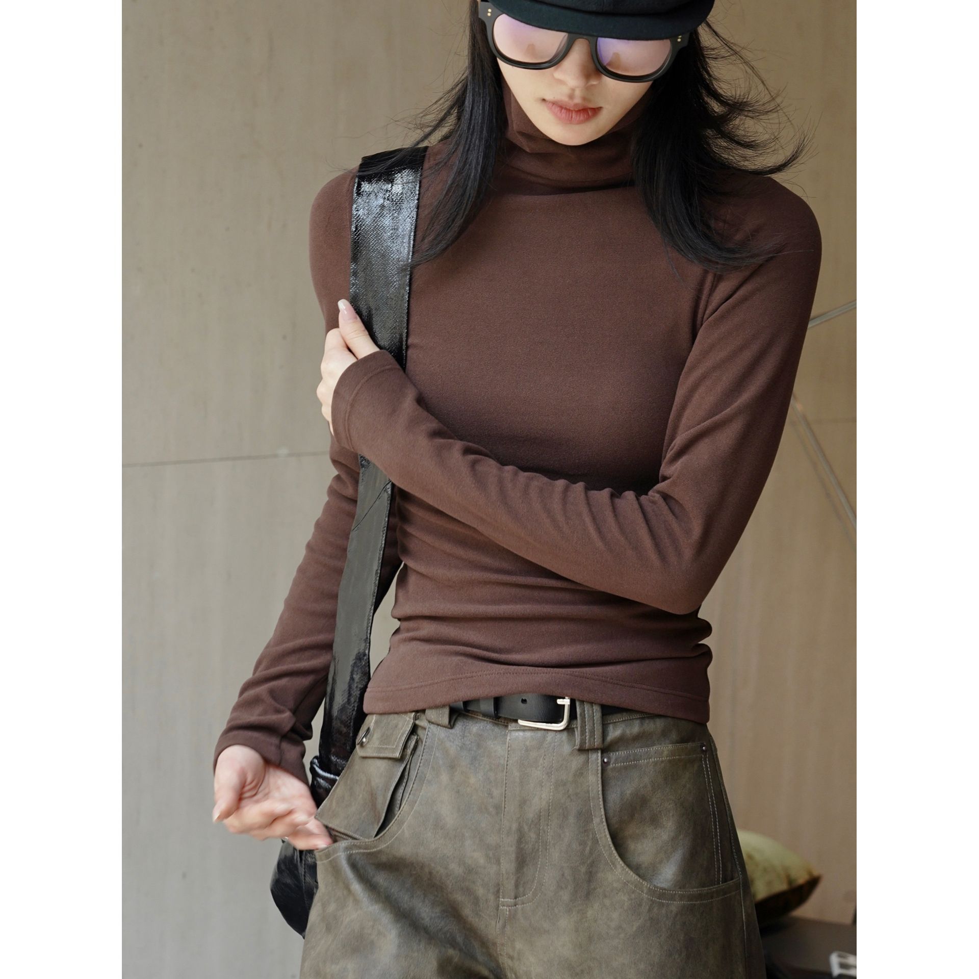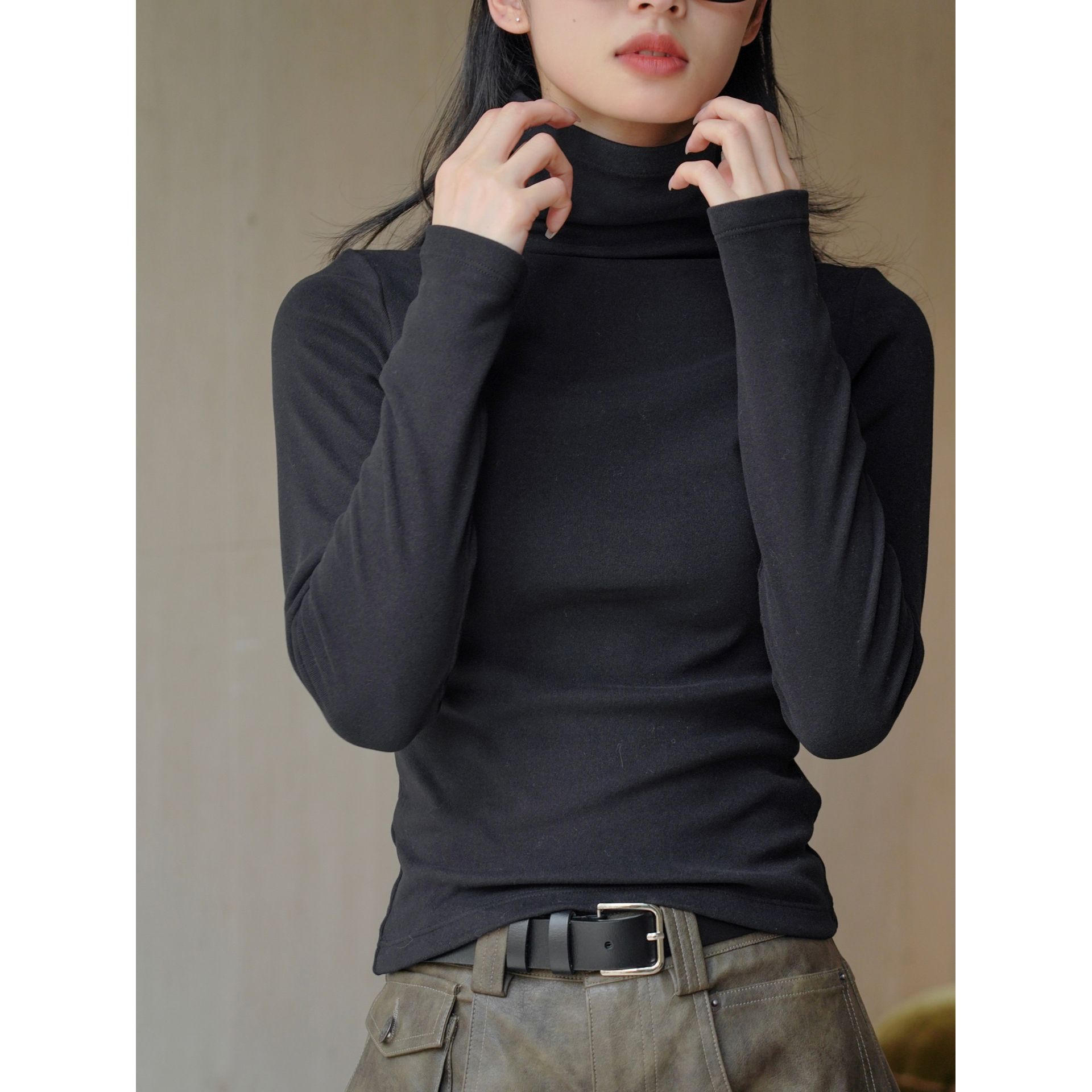 겨울 새로운 한국 스타일 게으른 소프트 스크럽 하이 넥 티셔츠 슬림 핏 슬리밍 통근 내부 긴 소매 탑