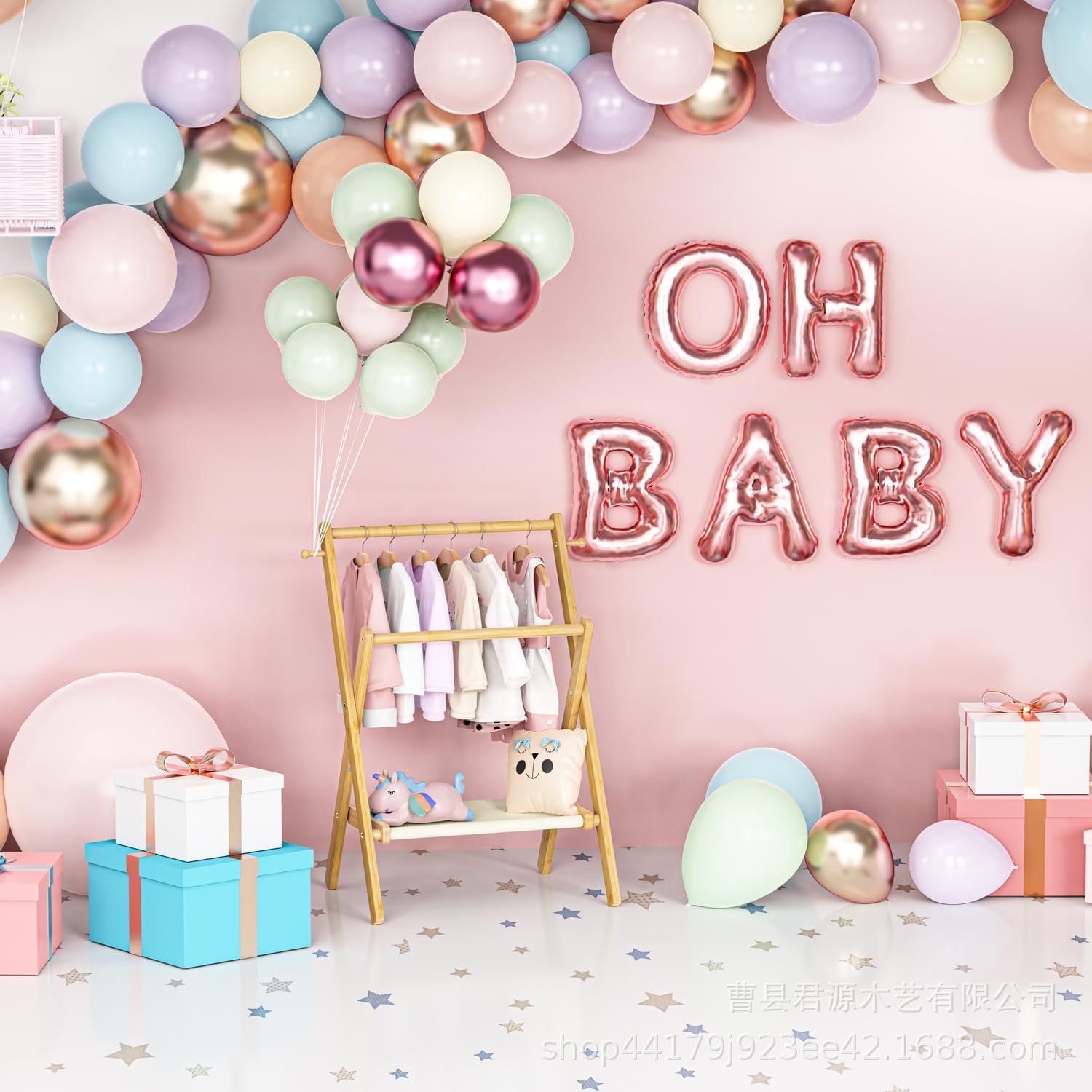 보관 선반과 이중 막대가있는 국경 간 나무 아기 의류 걸이 미니 옷장 랙 아기 목욕 주최자