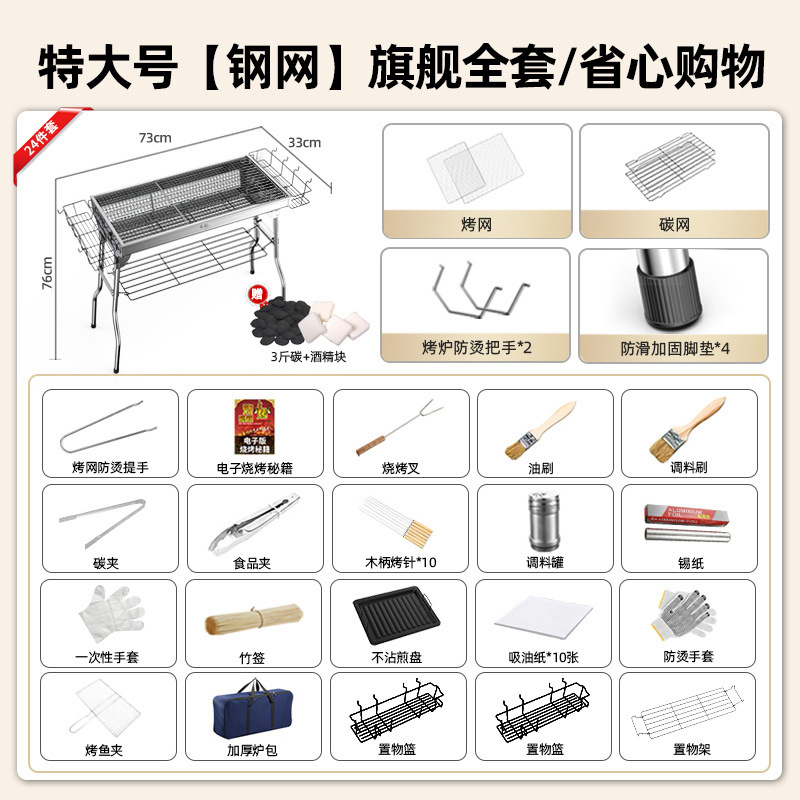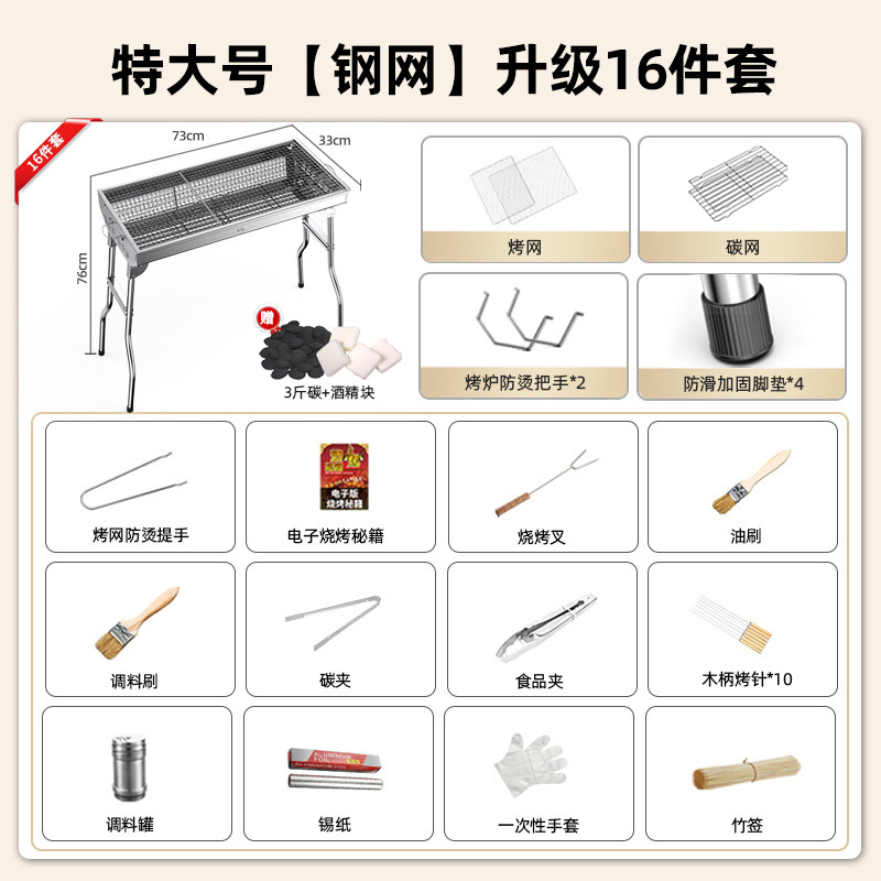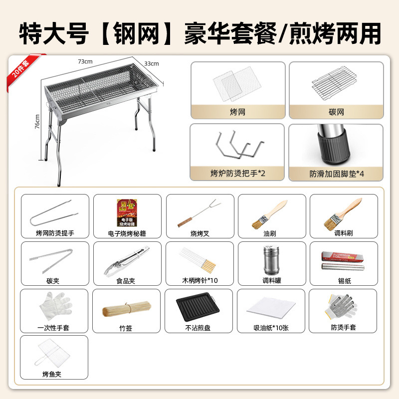 대형 스테인레스 스틸 바베큐 그릴 야외 가정용 숯불 바베큐 그릴 바베큐 그릴 야외 바베큐 도구 세트스토어 가기