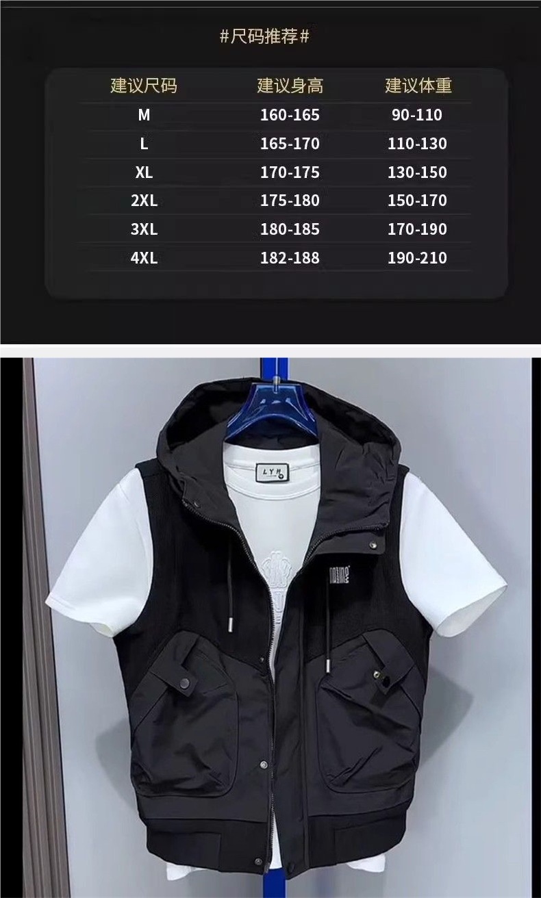 봄과 여름 남성의 새로운 캐주얼 후드 조끼, 고품질, 다재다능하고 패셔너블하며 슬림하고 젊고 트렌디한 재킷