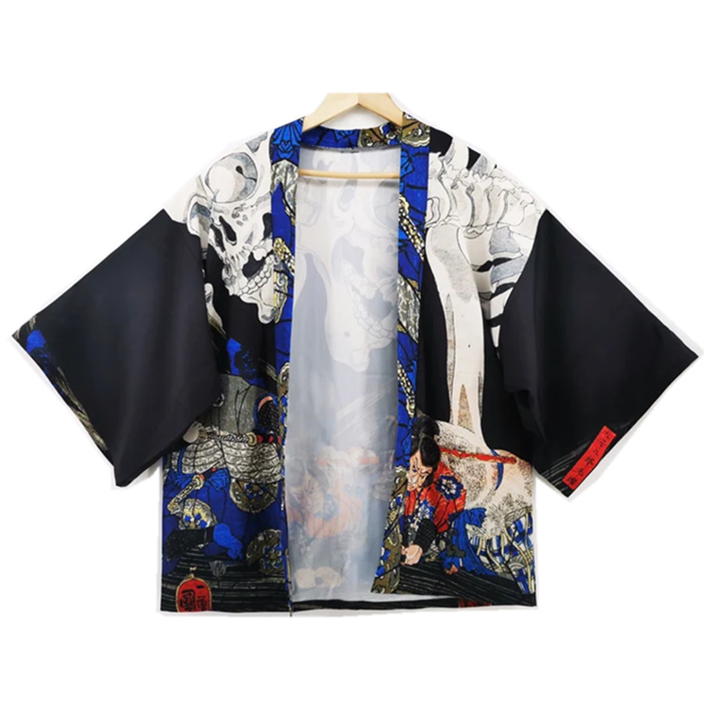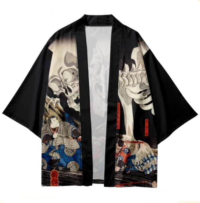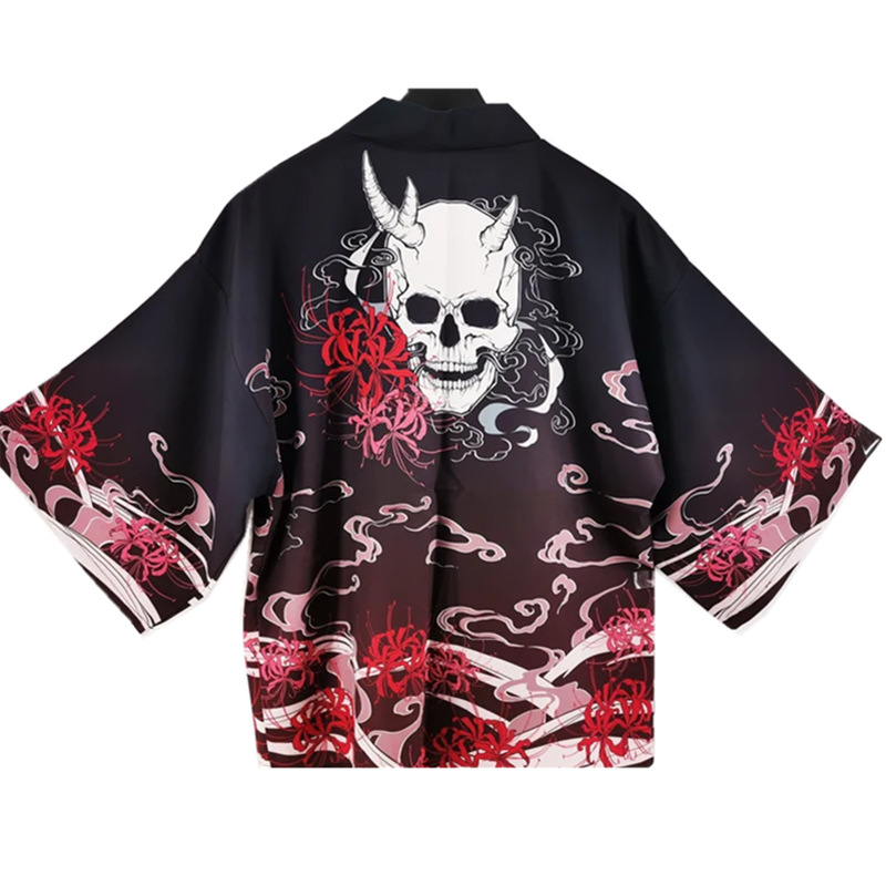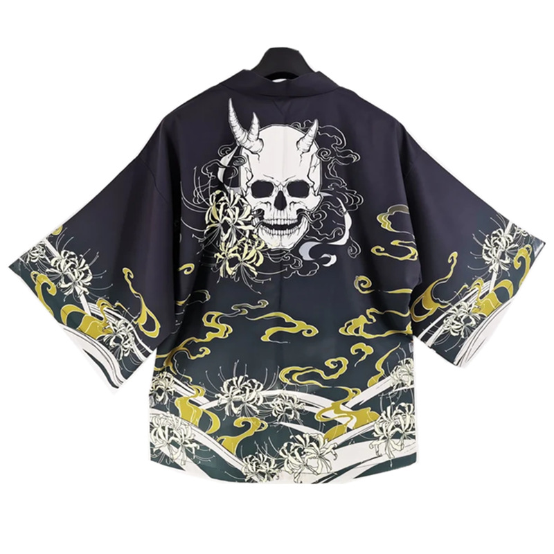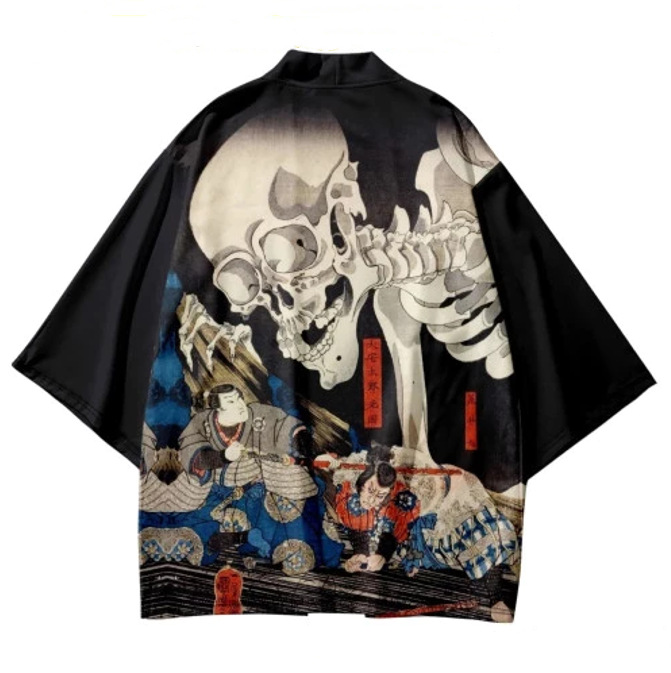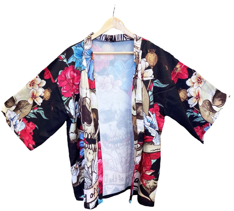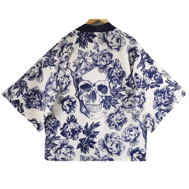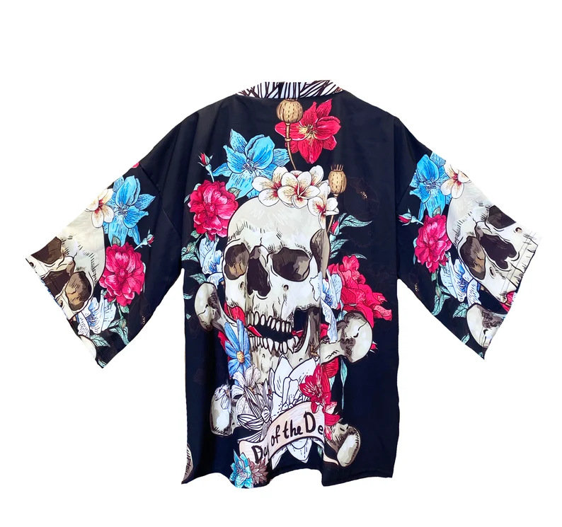 국경 간 2025 새로운 디지털 인쇄 해골 일본식 기모노 망토 코트 가운 잠옷 카디건 여성용