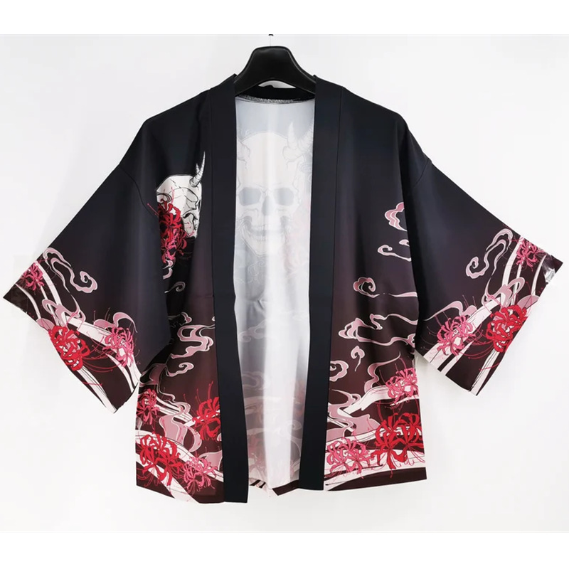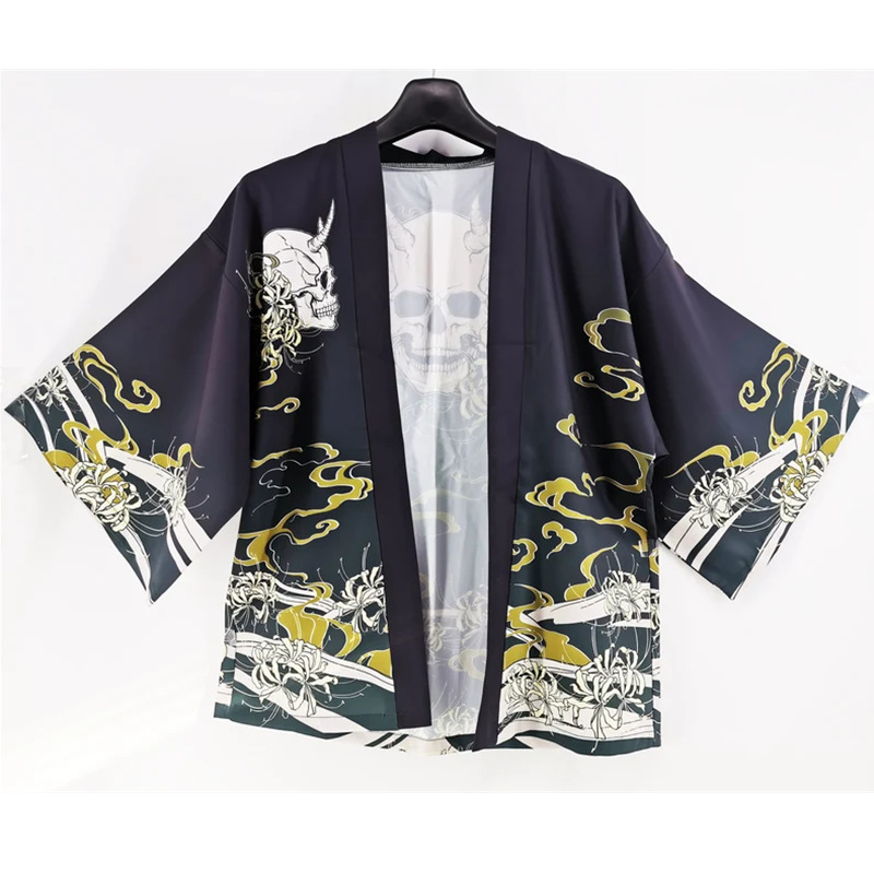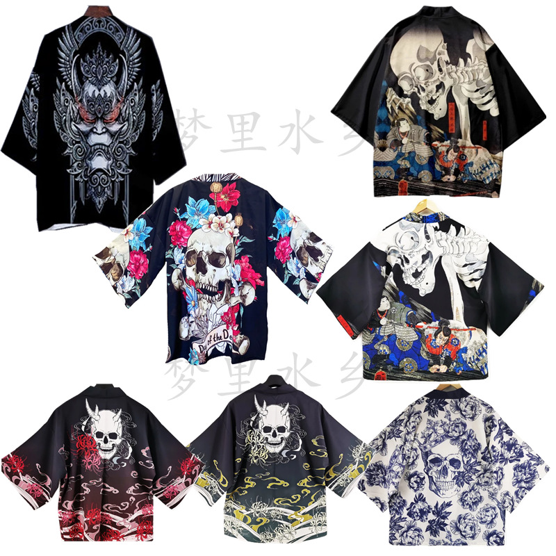국경 간 2025 새로운 디지털 인쇄 해골 일본식 기모노 망토 코트 가운 잠옷 카디건 여성용스토어 가기