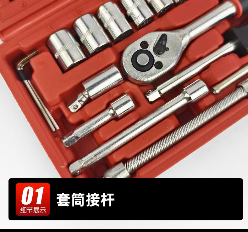 Xiaofei Tools 46피스 조합 자동 수리 및 유지 보수 세트 아연 도금 래칫 렌치 1/ 4inch 소켓 렌치 세트
