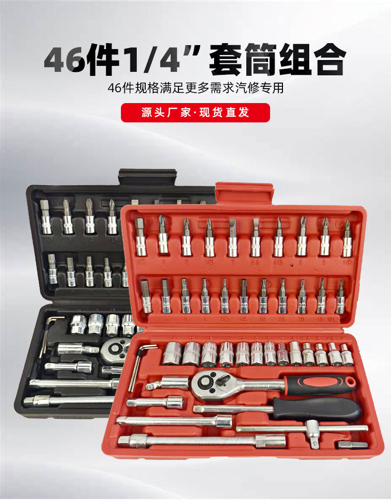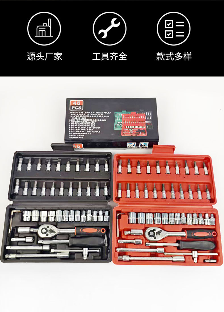 Xiaofei Tools 46피스 조합 자동 수리 및 유지 보수 세트 아연 도금 래칫 렌치 1/ 4inch 소켓 렌치 세트스토어 가기