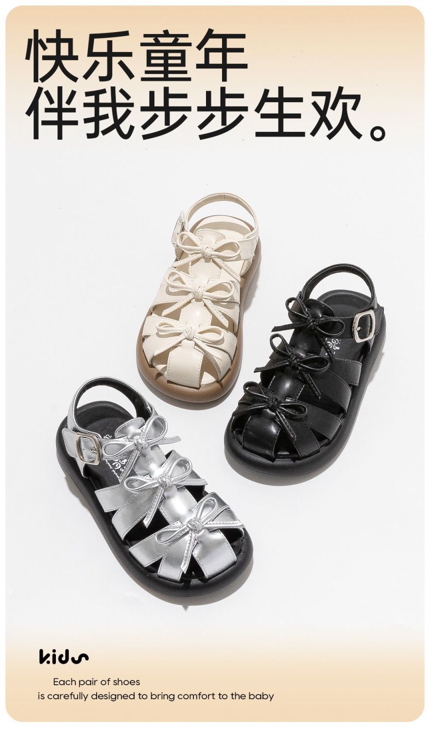 여름 신작 아동 샌들, 중소형 아동용 여아 샌들, 나비 부드러운 밑창, 부드러운 빵머리, 한국식 패션 캐주얼 신발스토어 가기
