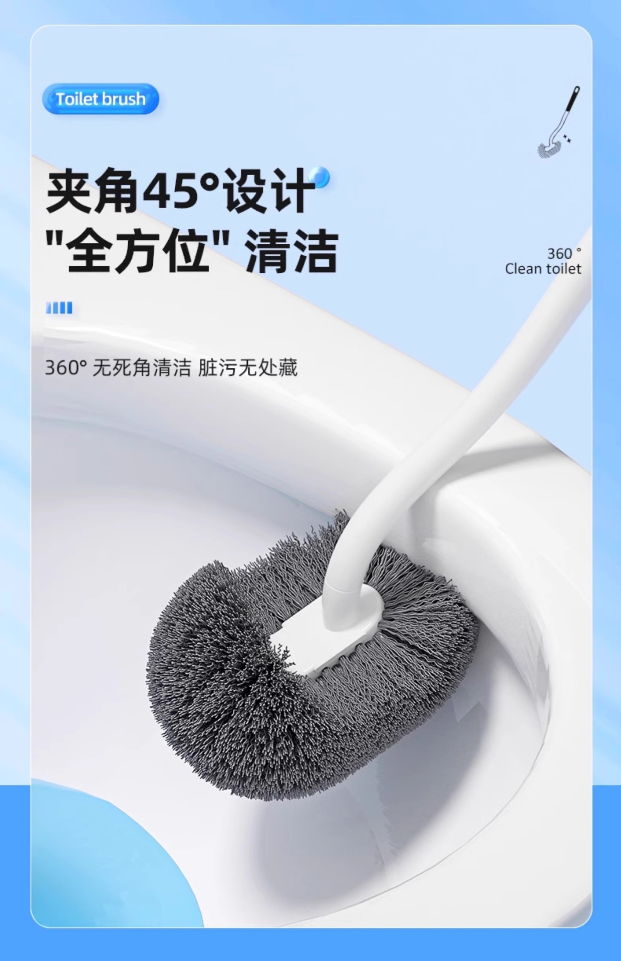 화장실 브러쉬, 가정용 변기 청소 브러쉬, 긴 손잡이 벽걸이형 청소 브러쉬, 사각지대 없는 긴 손잡이 청소 브러쉬