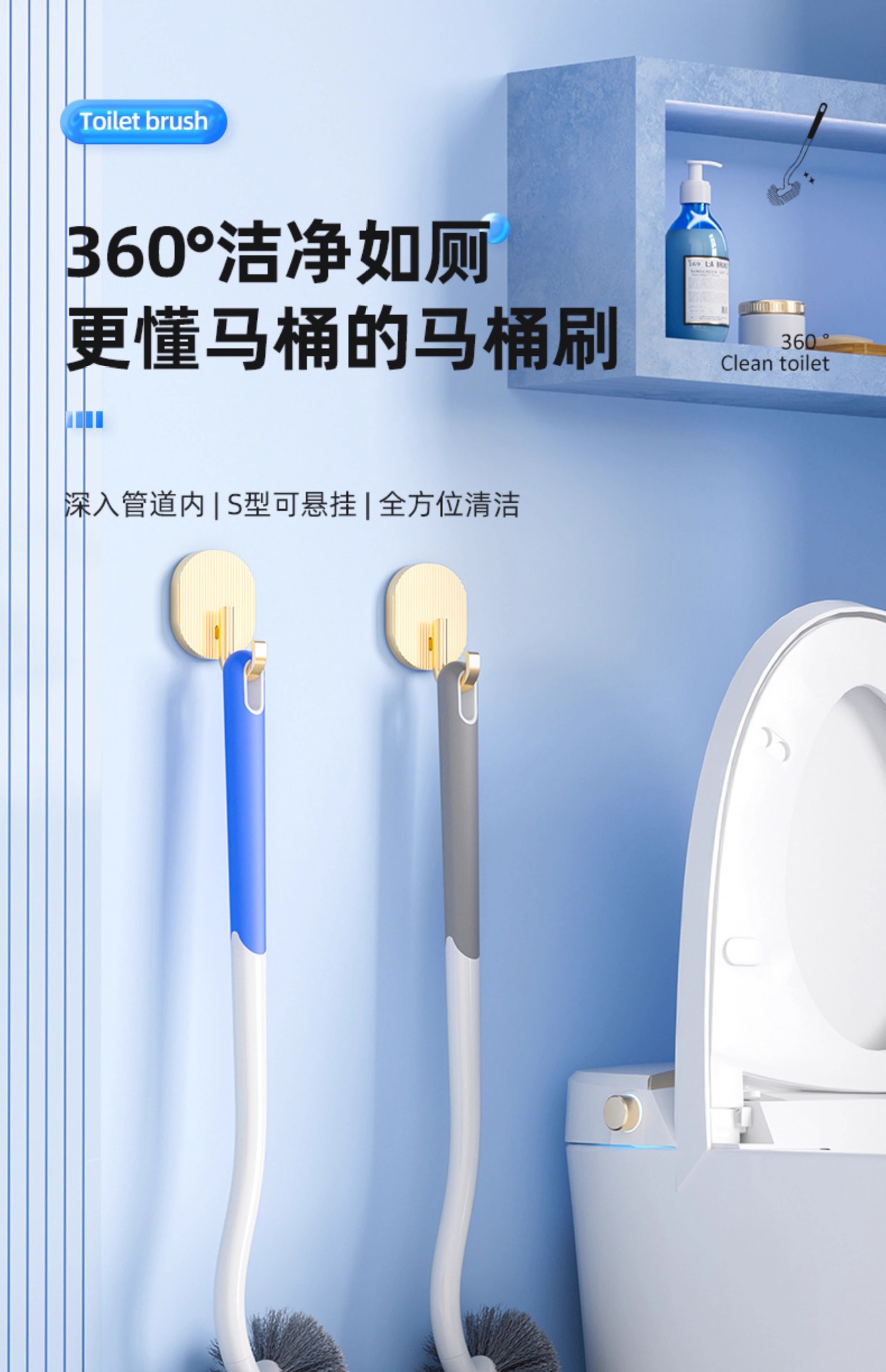 화장실 브러쉬, 가정용 변기 청소 브러쉬, 긴 손잡이 벽걸이형 청소 브러쉬, 사각지대 없는 긴 손잡이 청소 브러쉬스토어 가기