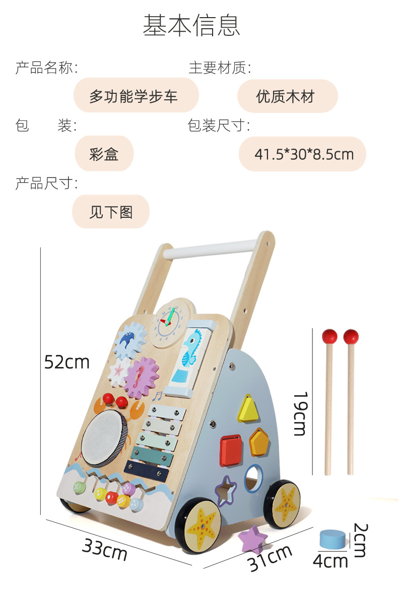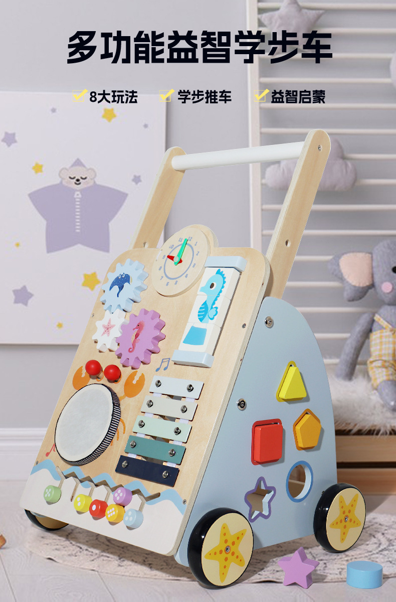 국경 간 나무 아기 워커 아기 1 세 선물 장난감 유아 워커 트롤리스토어 가기