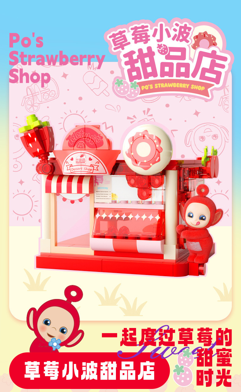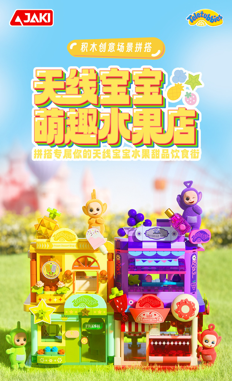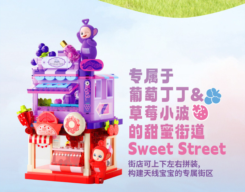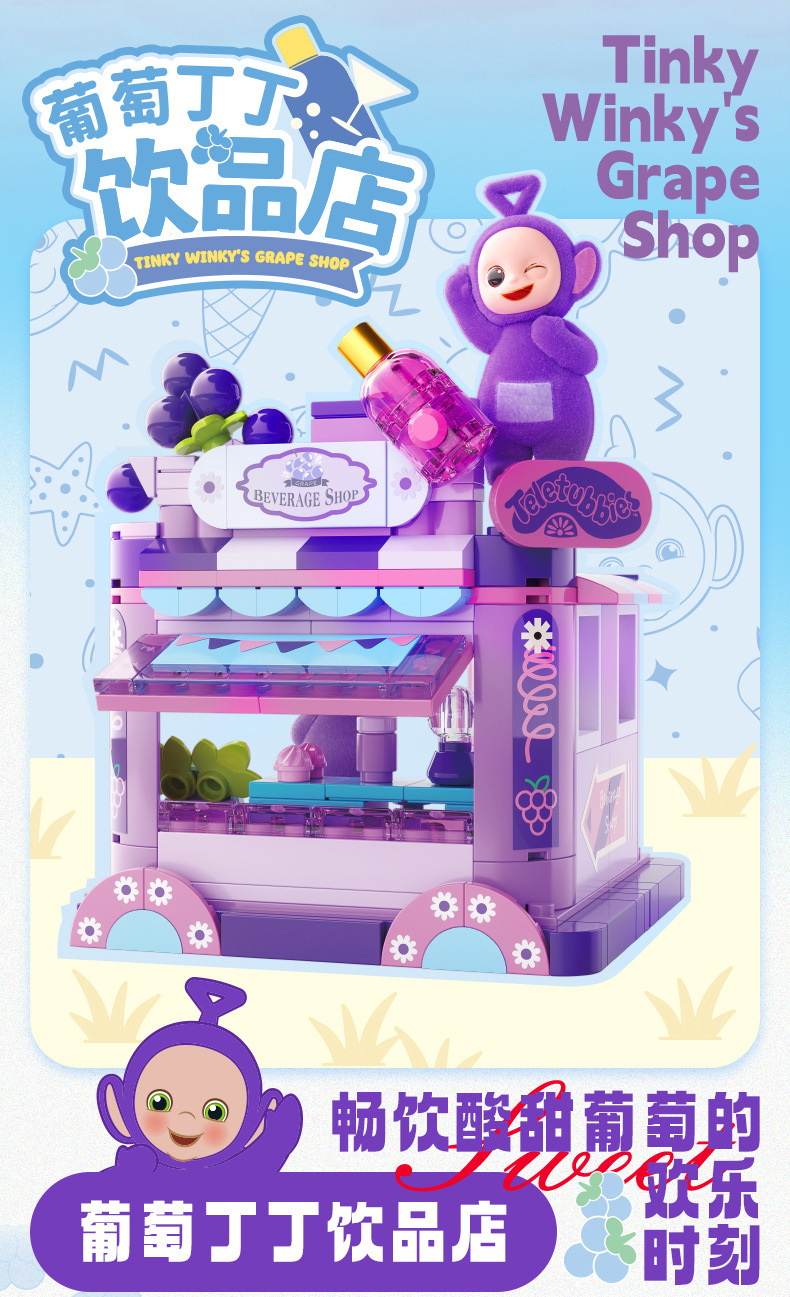 Jiaqi HK501-8 Teletubbies 과일 가게 관람차 장면 장식품 조립 빌딩 블록 Little Red Book 선물스토어 가기