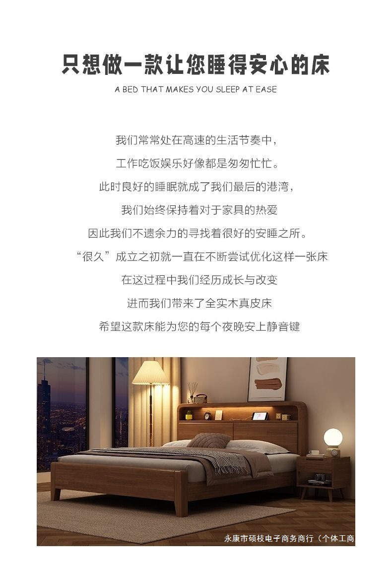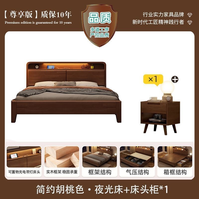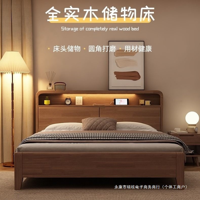 간단한 수납 원목 침대 호두 1.95m m 더블 침대 마스터 침실 경제적인 웨딩 침대 1.47m M 어린이 침대스토어 가기