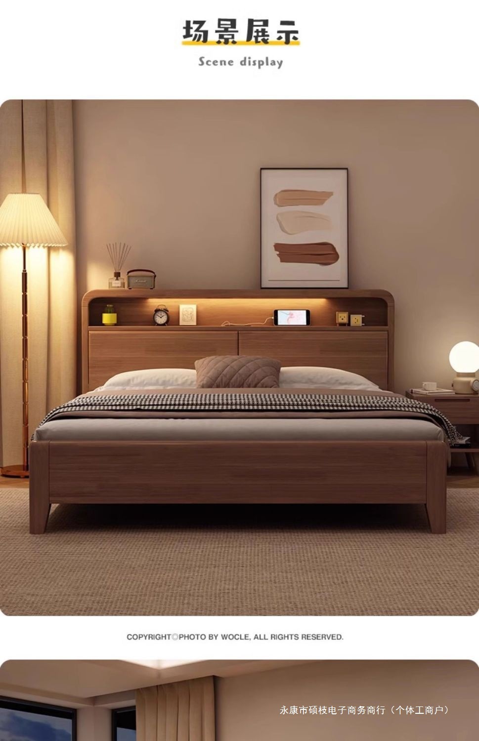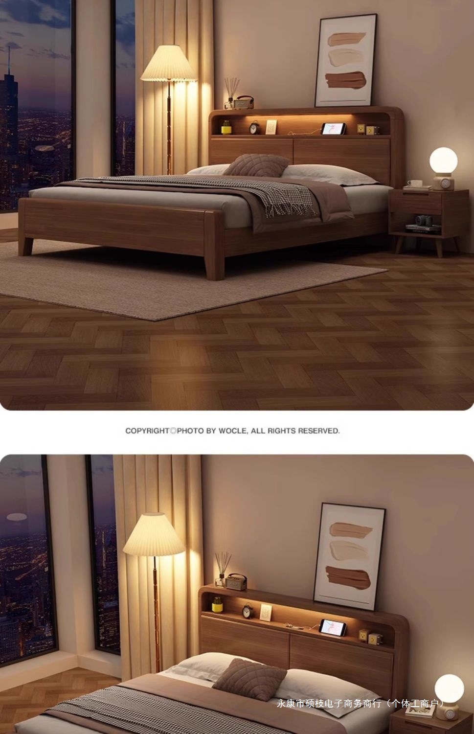 • 단단한 침대 + 침대 옆 터치 램프 + 원목 침대 옆 탁자*2