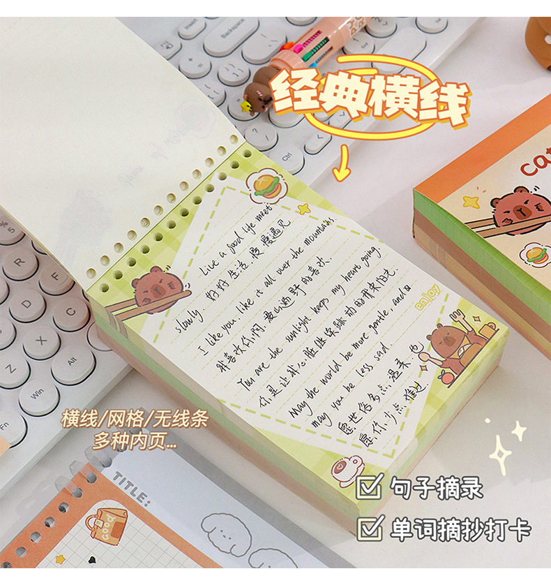 Capibala Loose-leaf Note Book 학생 사무실 Tearable Loose-leaf Book 만화 Capybara 노트북 노트 종이