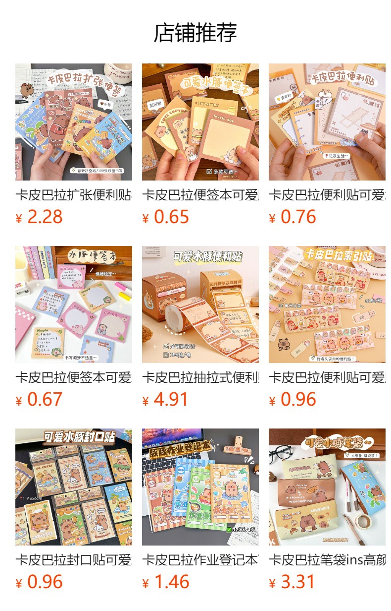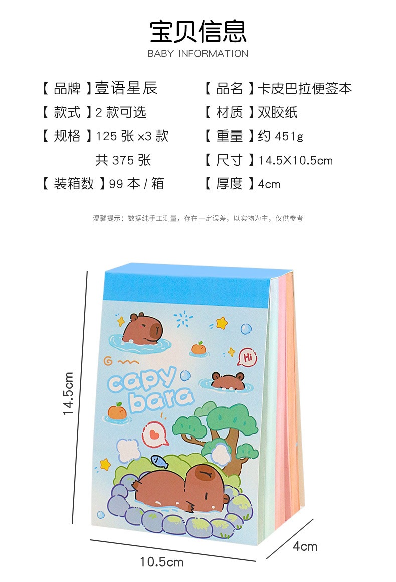 Capibala Loose-leaf Note Book 학생 사무실 Tearable Loose-leaf Book 만화 Capybara 노트북 노트 종이스토어 가기
