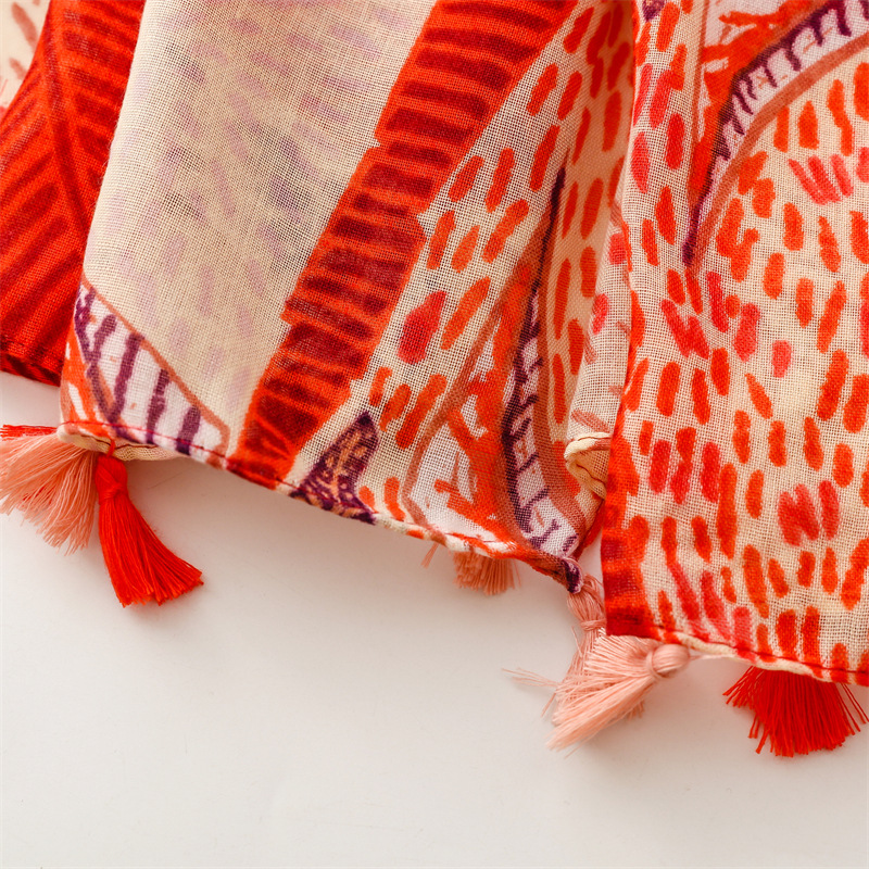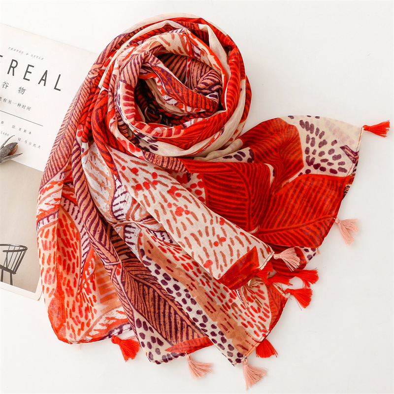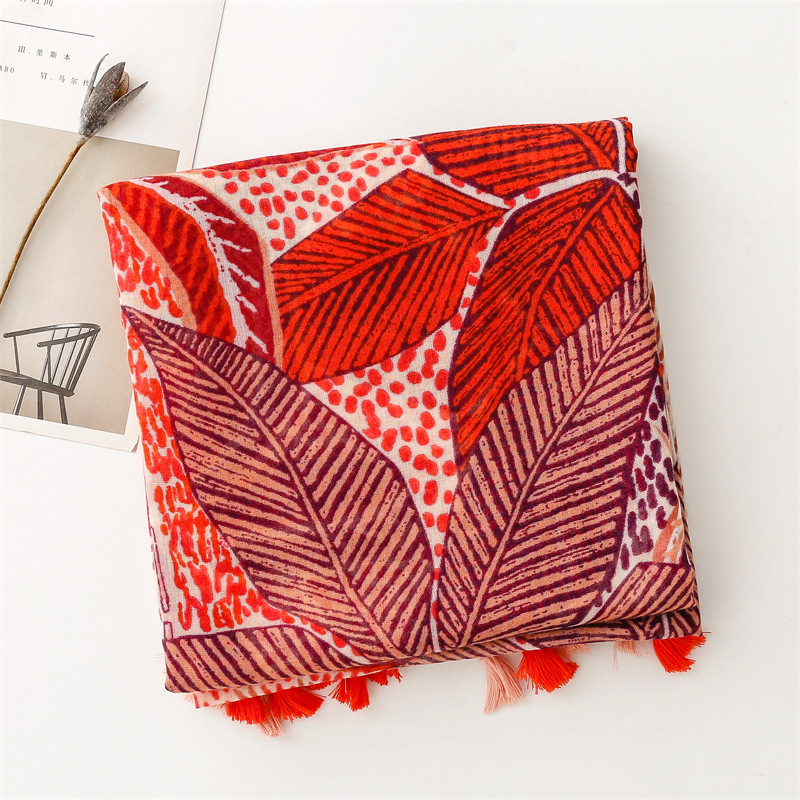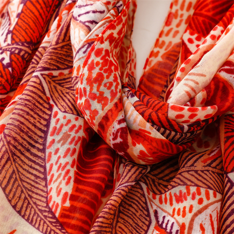 대외 무역 국경 수출 의류 액세서리면 및 린넨 손 스카프 오렌지 잎 꽃 스카프 여행 선 스크린 목도리