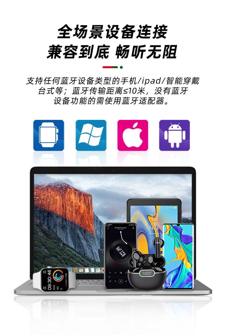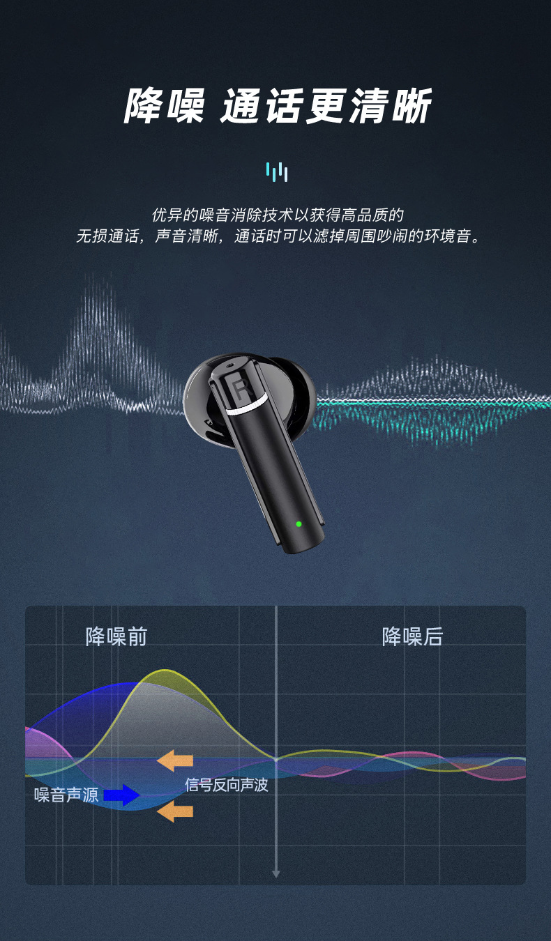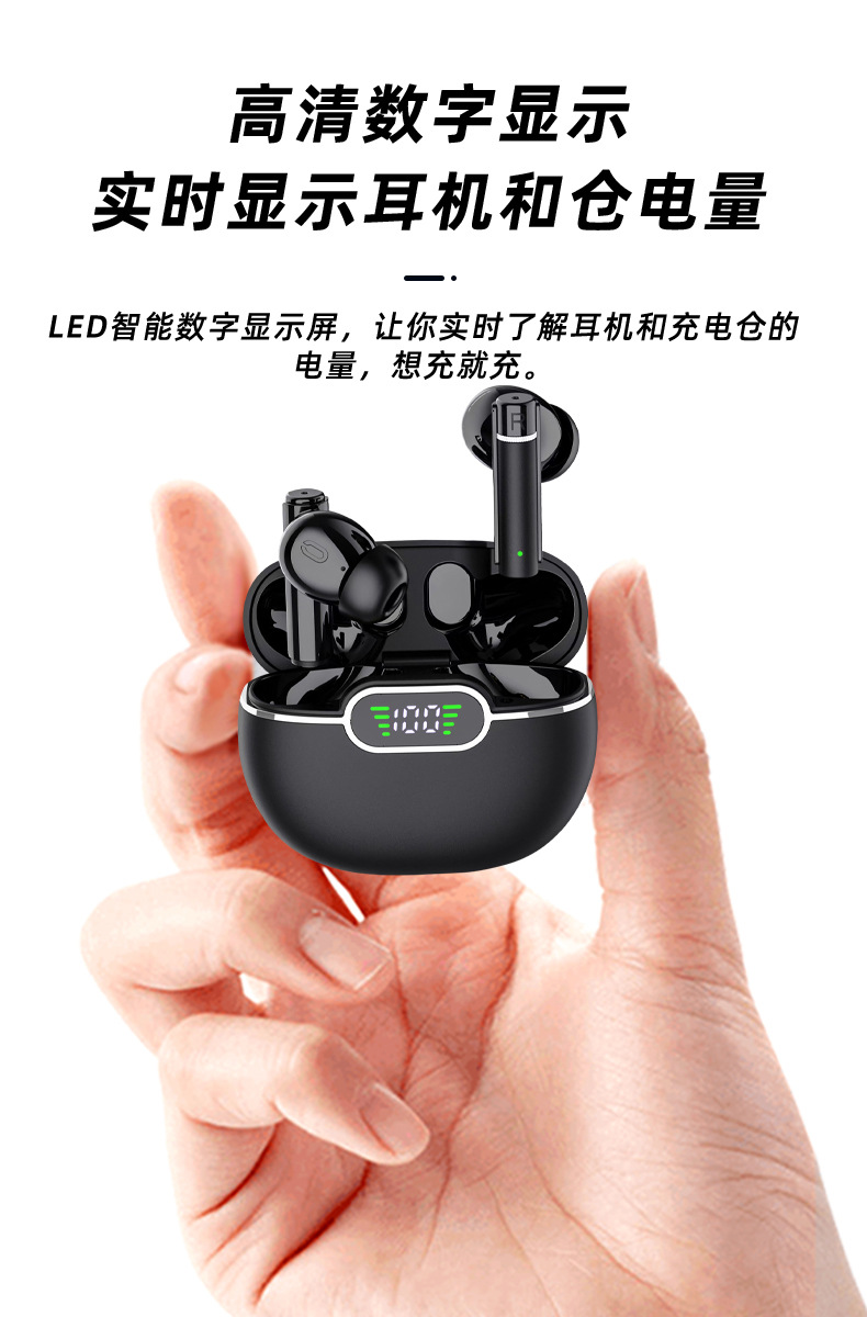 새로운 검은 기술 소음 감소 디지털 디스플레이 패션 긴 수명 귀 무선 헤드셋 스포츠 방수 블루투스 헤드셋