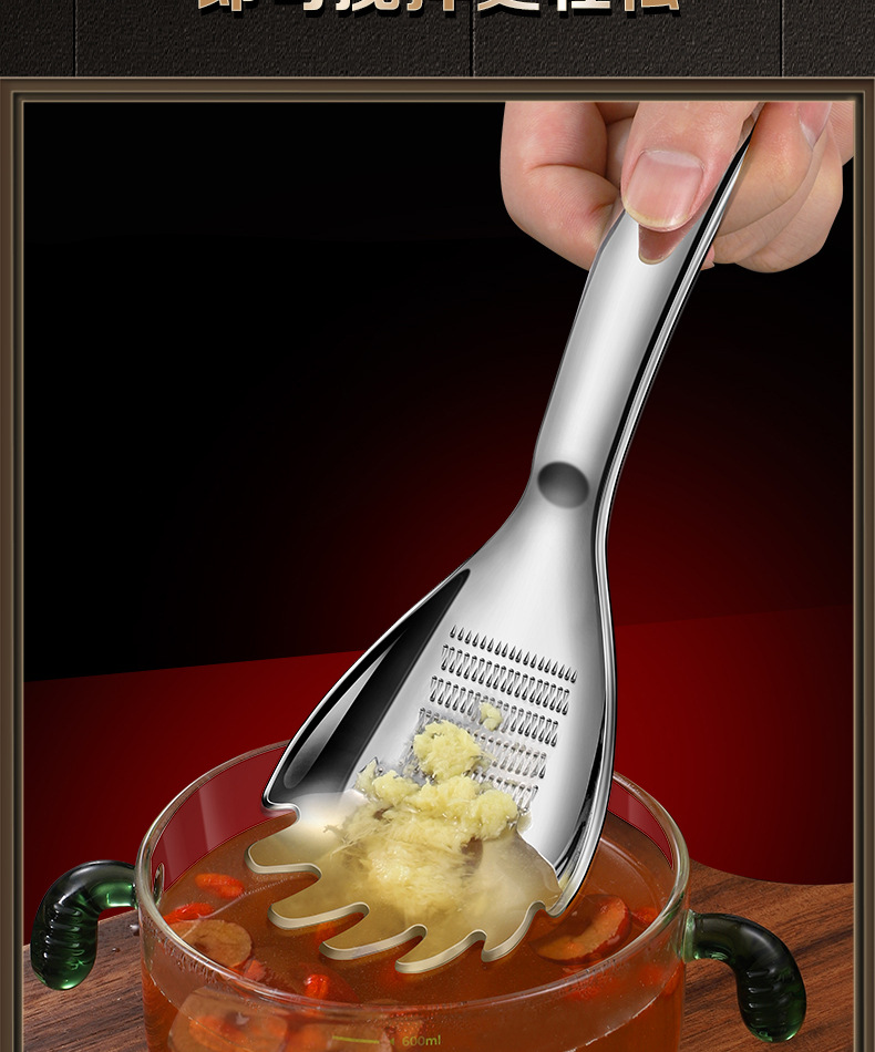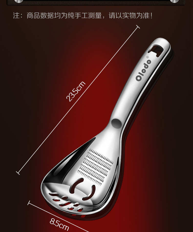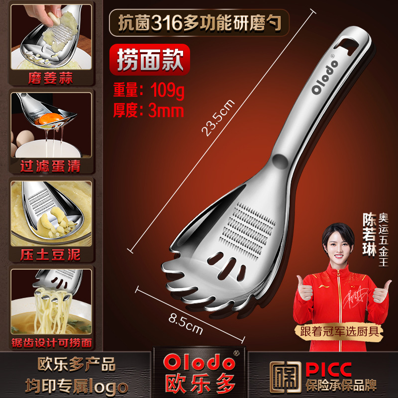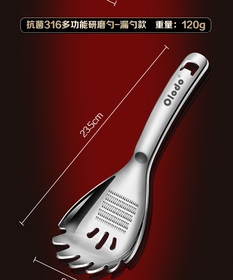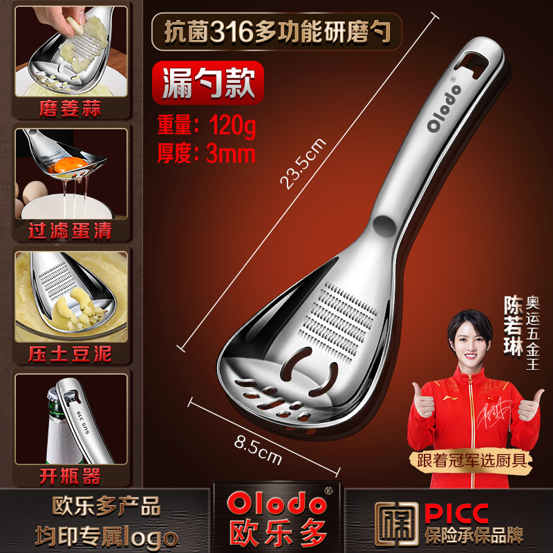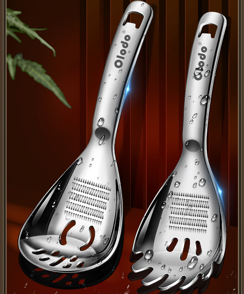 • 두꺼운 316 다기능 분쇄 스푼 [소쿠리 스푼 모델] 으깬 감자 + 생강 및 마늘 분쇄 + 달걀 흰자 필터 + 병 뚜껑 열기 가능