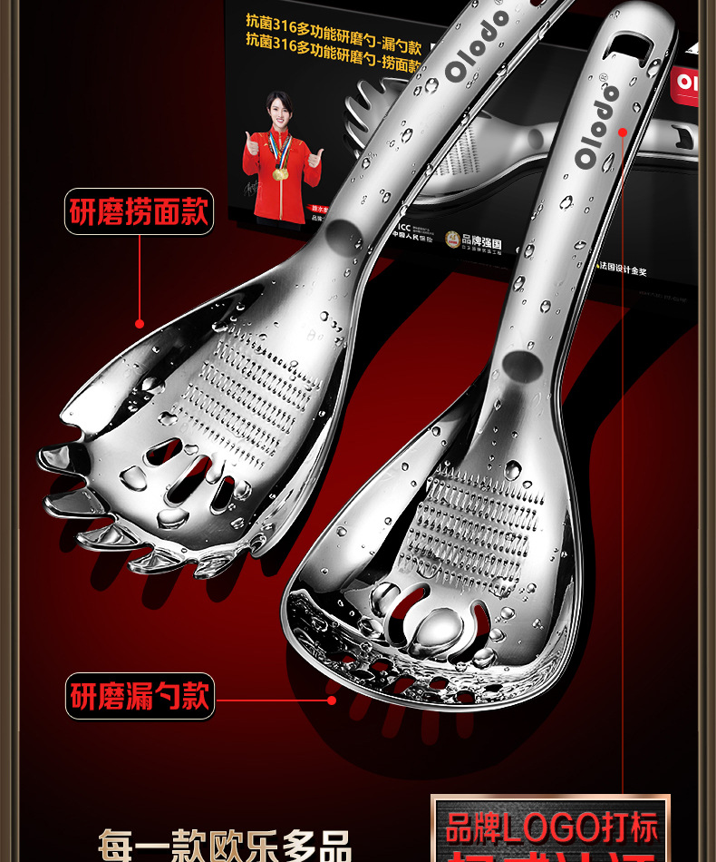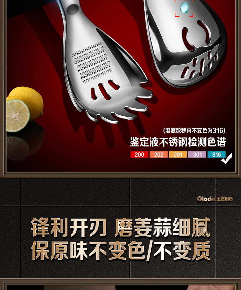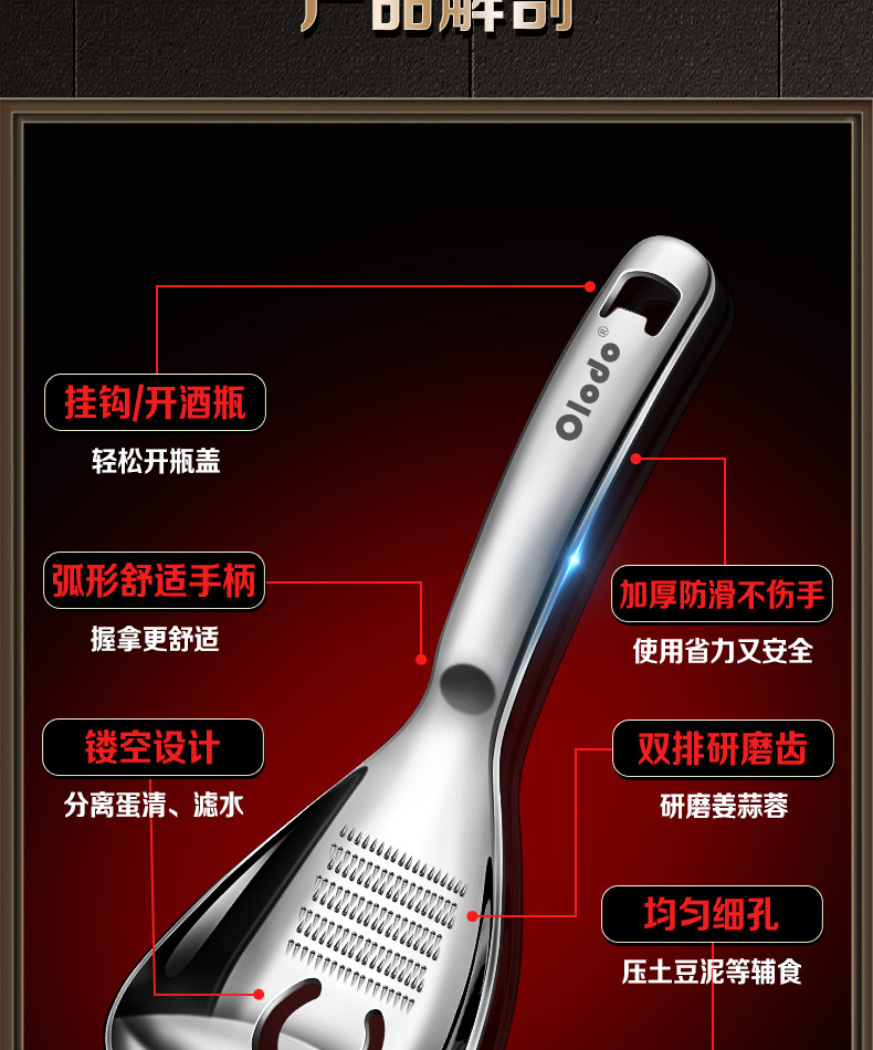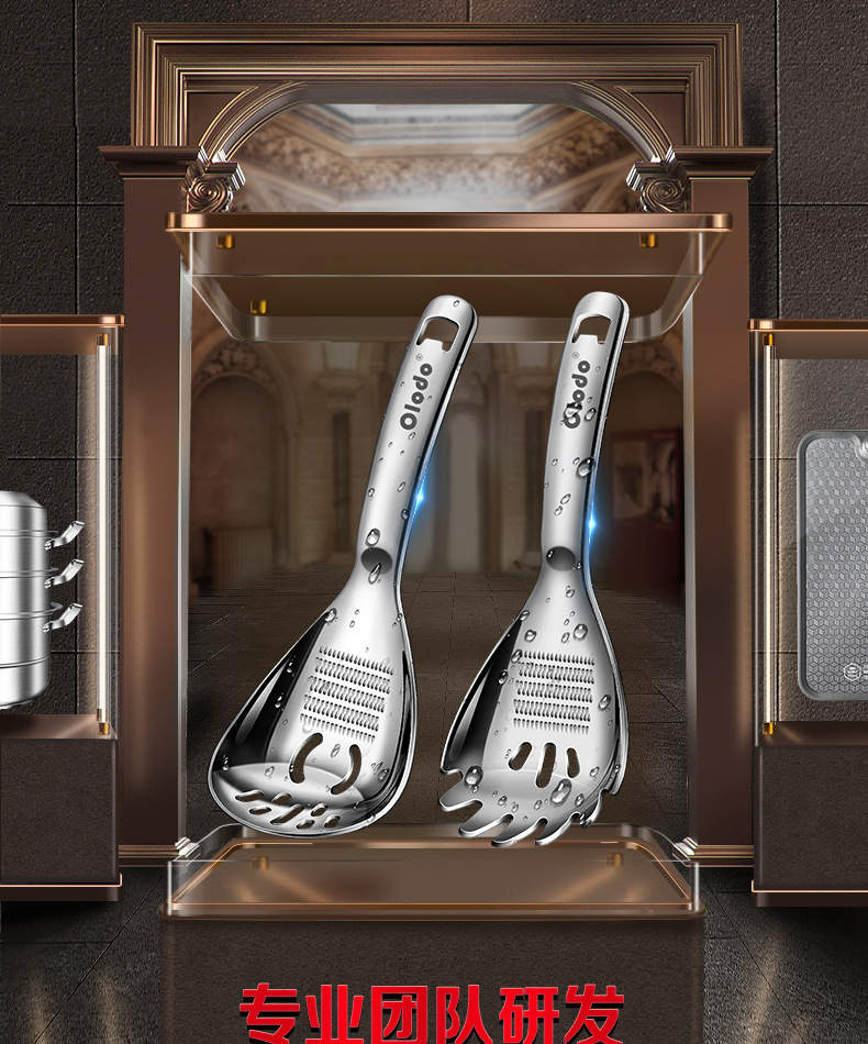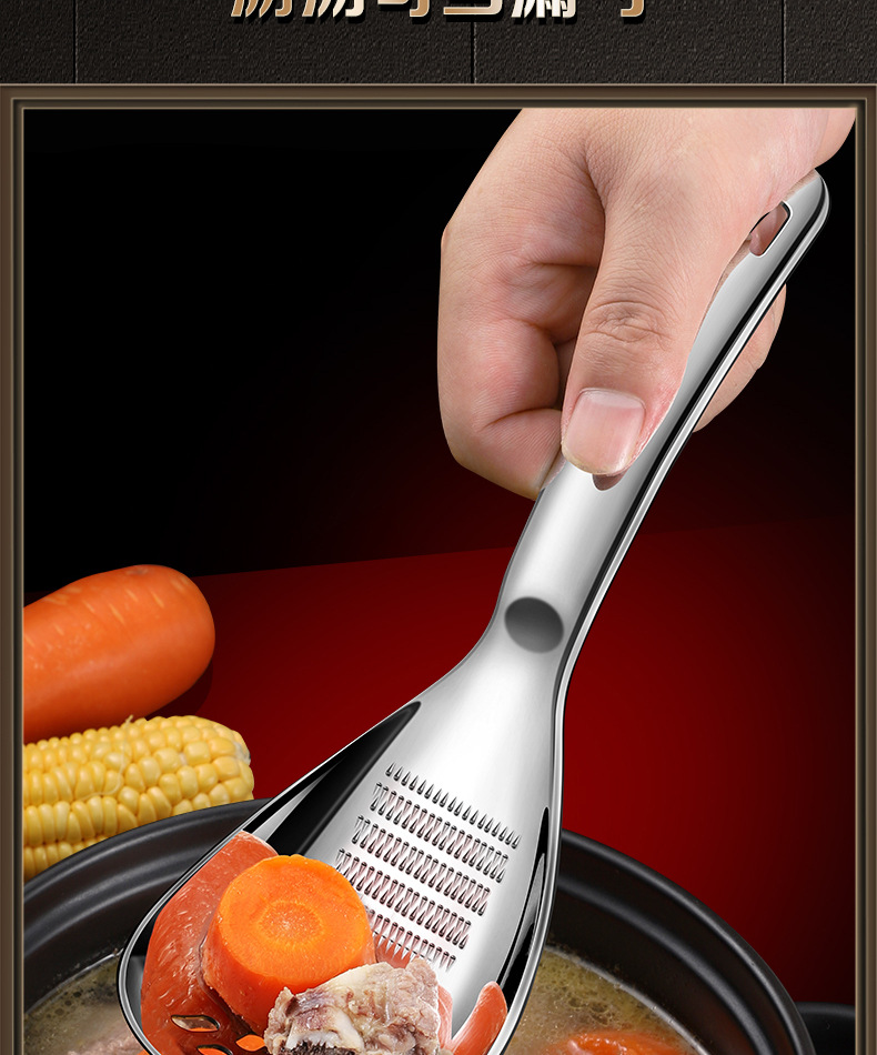 • 두꺼운 316 다기능 분쇄 스푼 [소쿠리 스푼 모델] 으깬 감자 + 생강 및 마늘 분쇄 + 달걀 흰자 필터 + 병 뚜껑 열기 가능