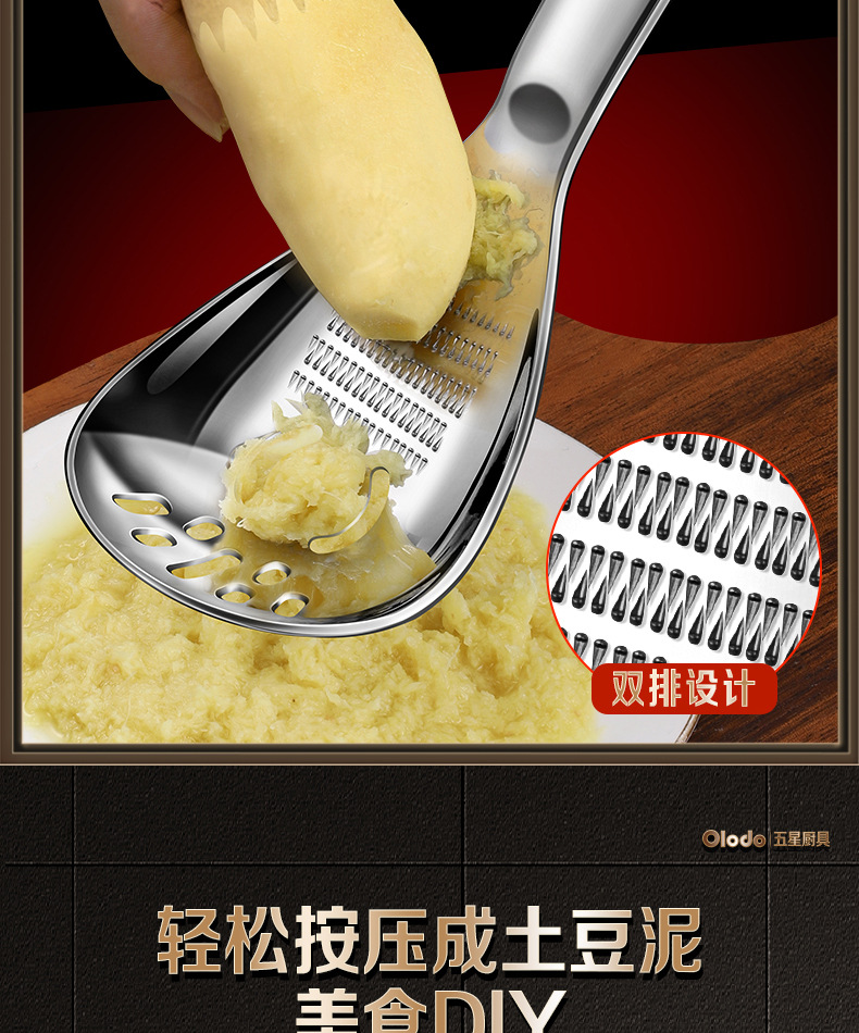 다기능 요리 숟가락 소쿠리 316 스테인레스 스틸 압력 감자 마셔 마늘 매시 생강 그라인딩 스푼 식품 보충 도구스토어 가기