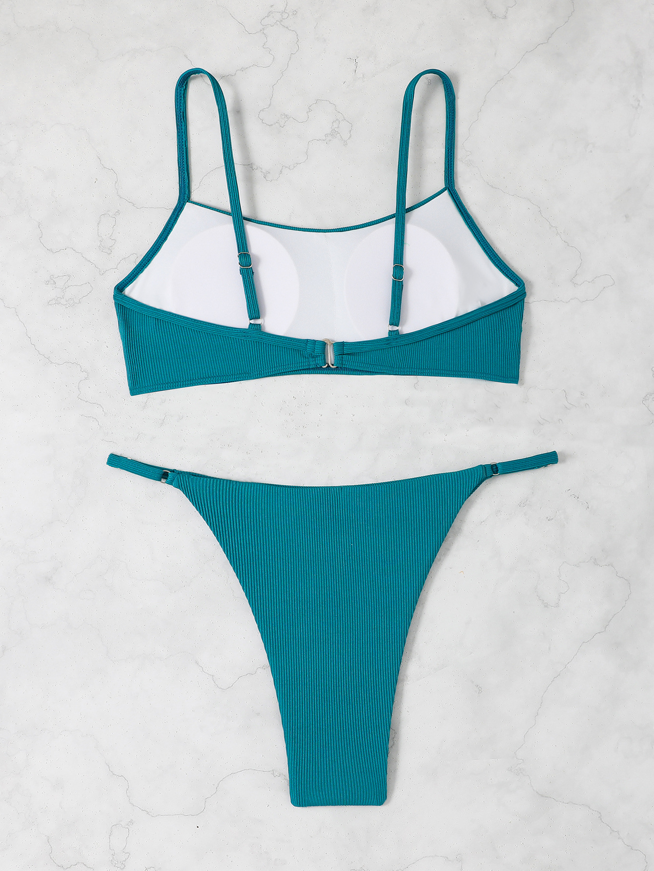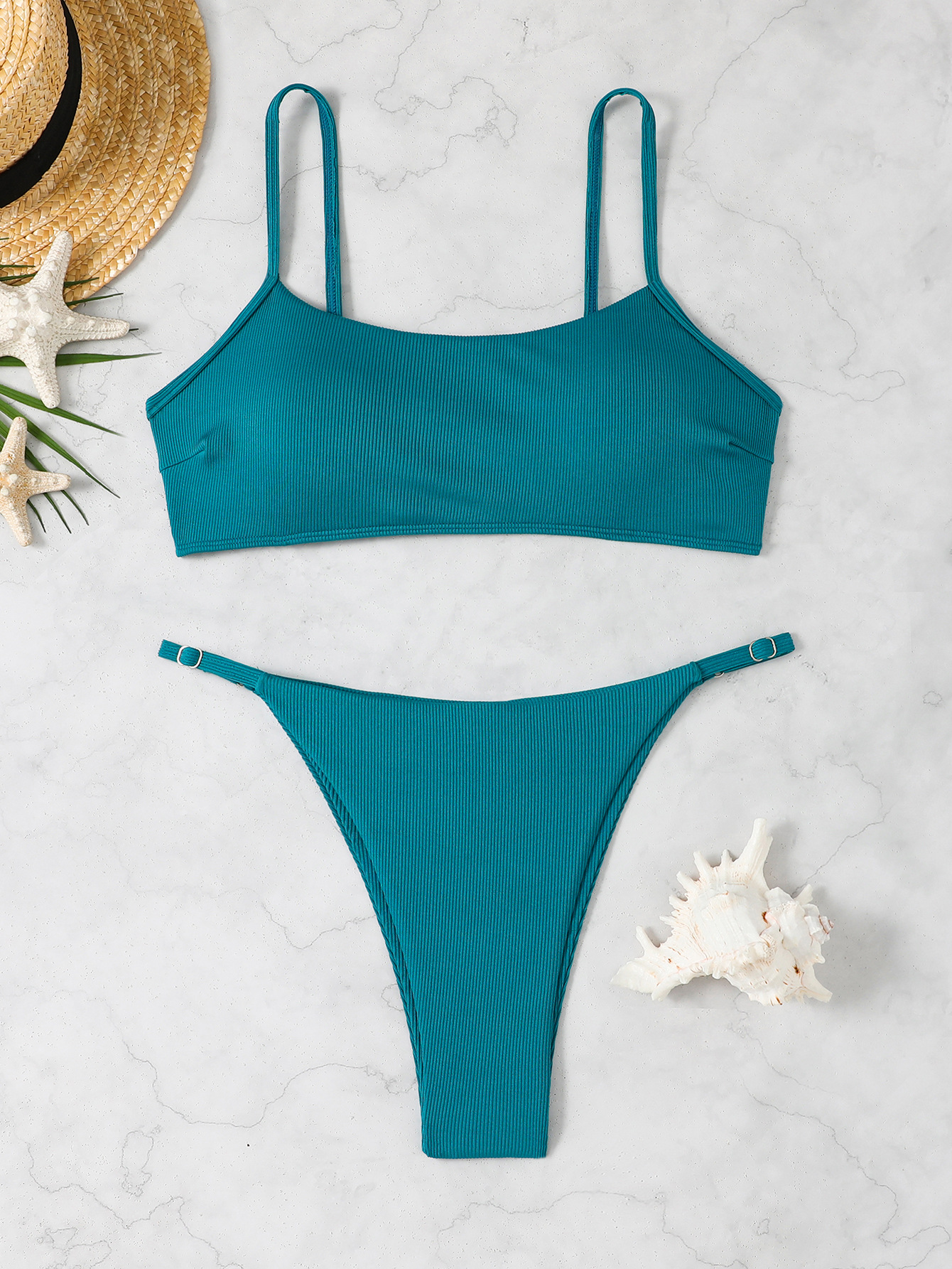 2024 새로운 단색 작은 피트 더블 어깨 삼각형 분할 수영복 여성 대외 무역 섹시한 해변 수영복 비키니