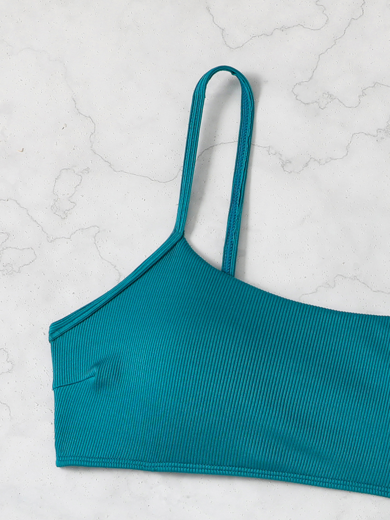 2024 새로운 단색 작은 피트 더블 어깨 삼각형 분할 수영복 여성 대외 무역 섹시한 해변 수영복 비키니스토어 가기