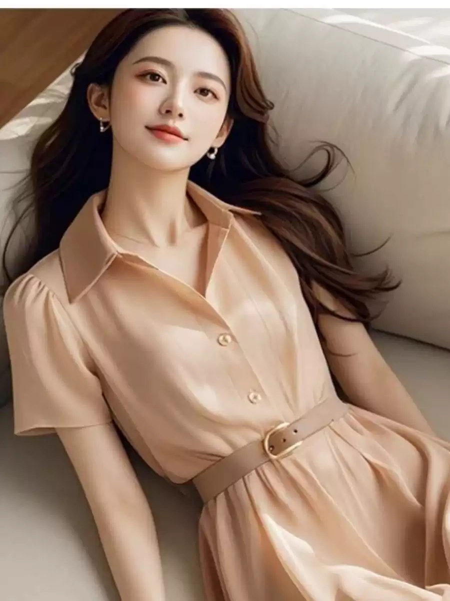 2025 년 새로운 여름 인기 올해의 단순하고 관대 한 고급 감각 단색 쉬폰 원피스 여성 원피스스토어 가기