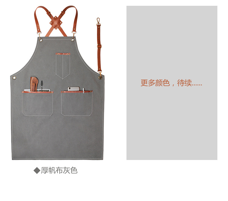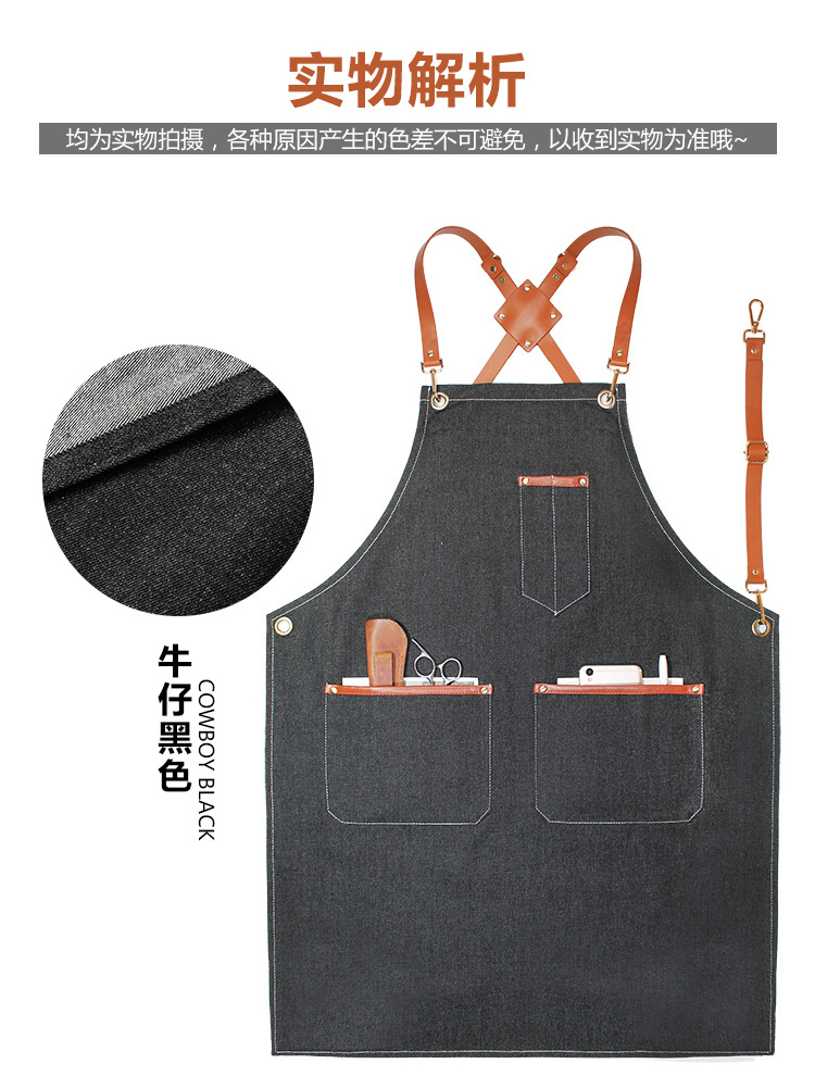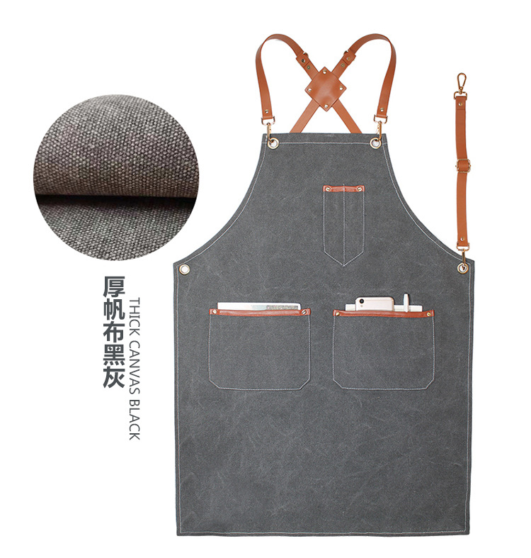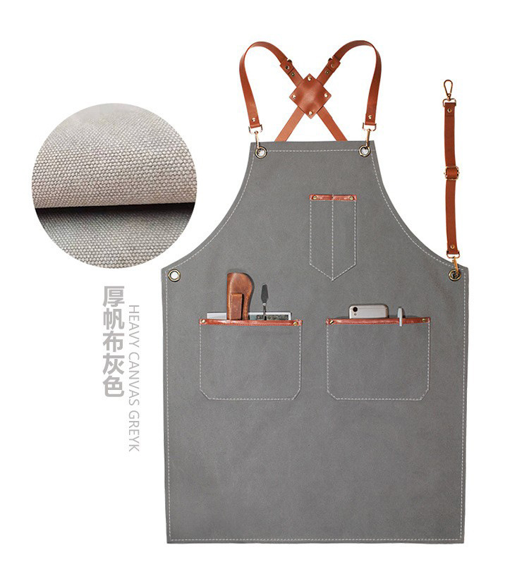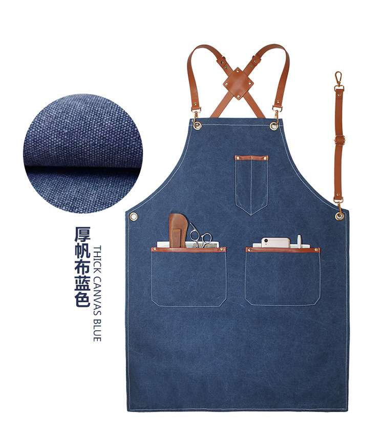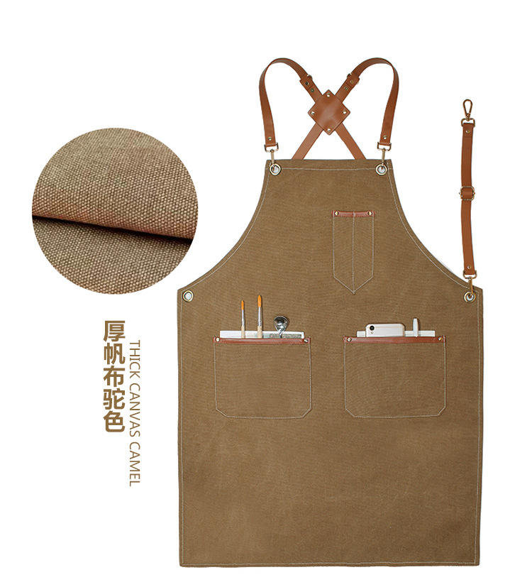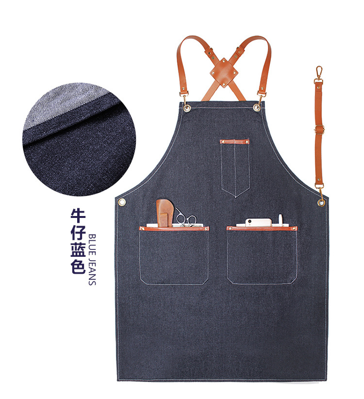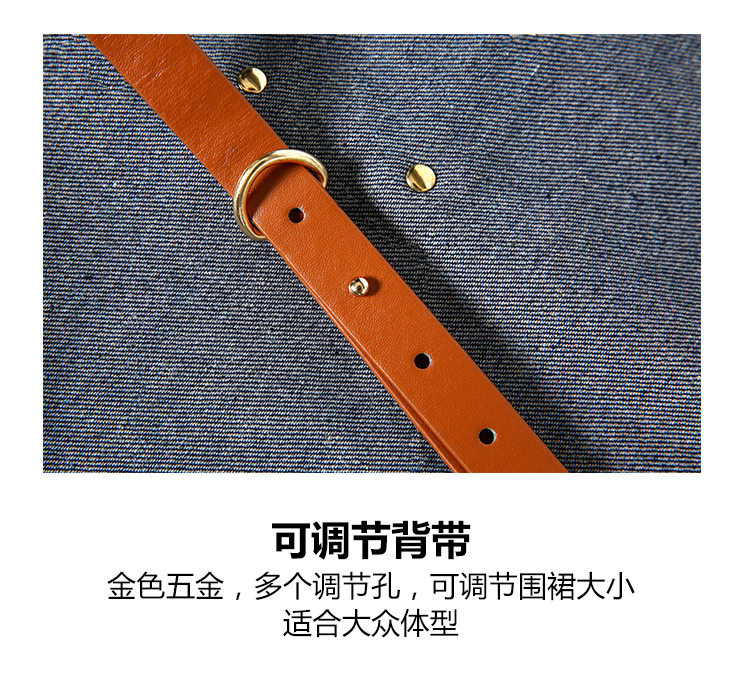 아마존 데님 앞치마 포켓 가죽 스트립 창조적 인 가죽 스트랩 미용사 작업 옷 두꺼운 캔버스 앞치마 도매스토어 가기